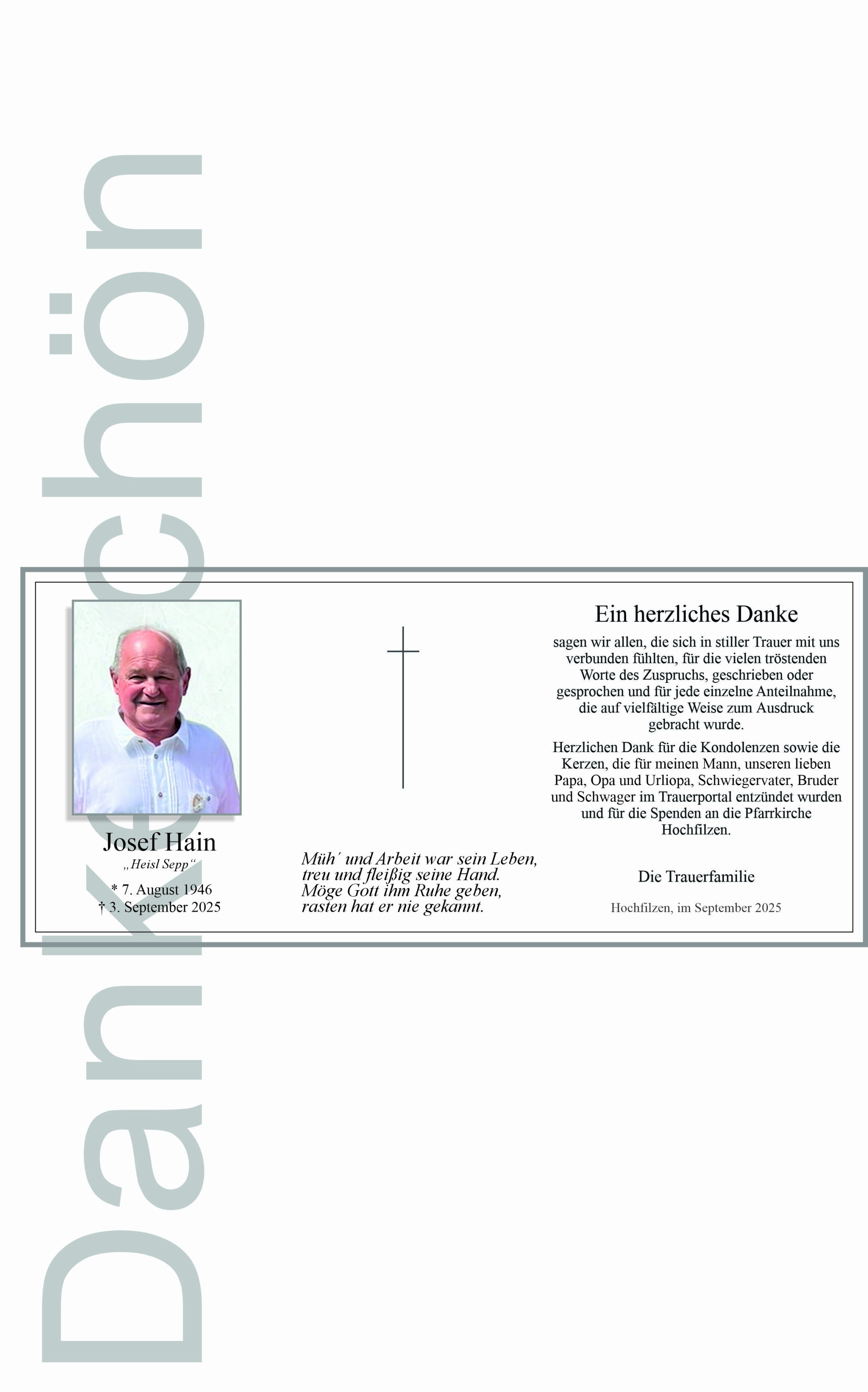 Friedhof Hochfilzen, † 03.09.2025 (79 Jahre)