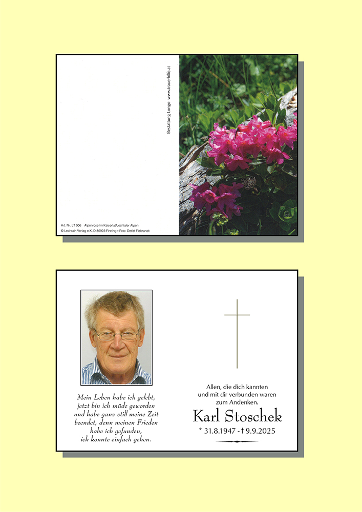 Liebe Erika, zu deinem schweren Verlust mein herzlichstes Beileid . Auch an deine Familie mein Mitgefühl . Als ehemalige Jugendfreundin und Schulkameradin fühle ich mit dir und sende dir diese Zeilen aus Katzelsdorf in NÖ .