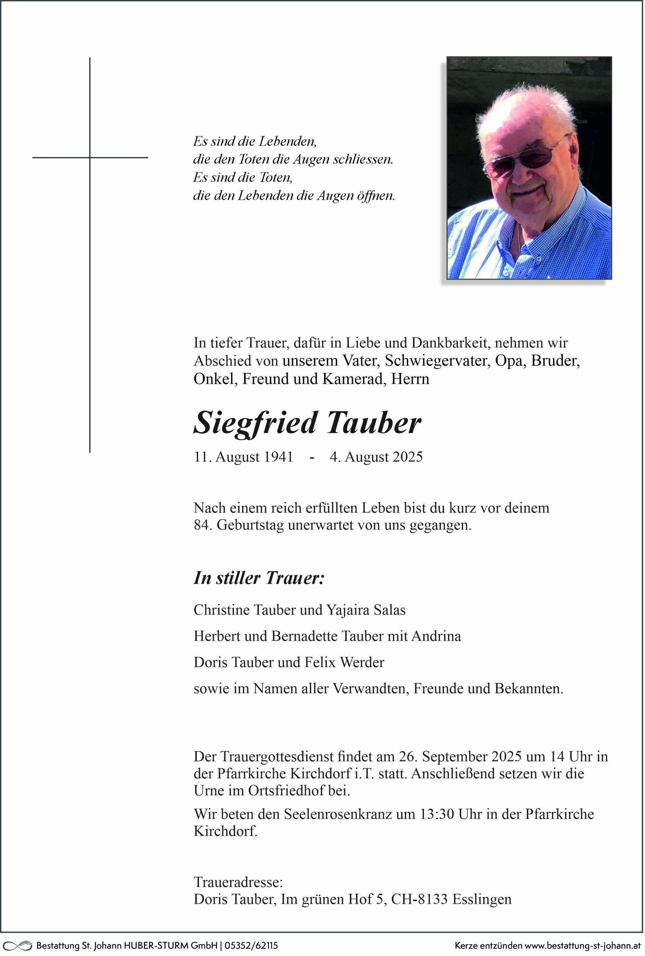 Friedhof Friedhof Kirchdorf i.T., † 04.08.2025 (83 Jahre)