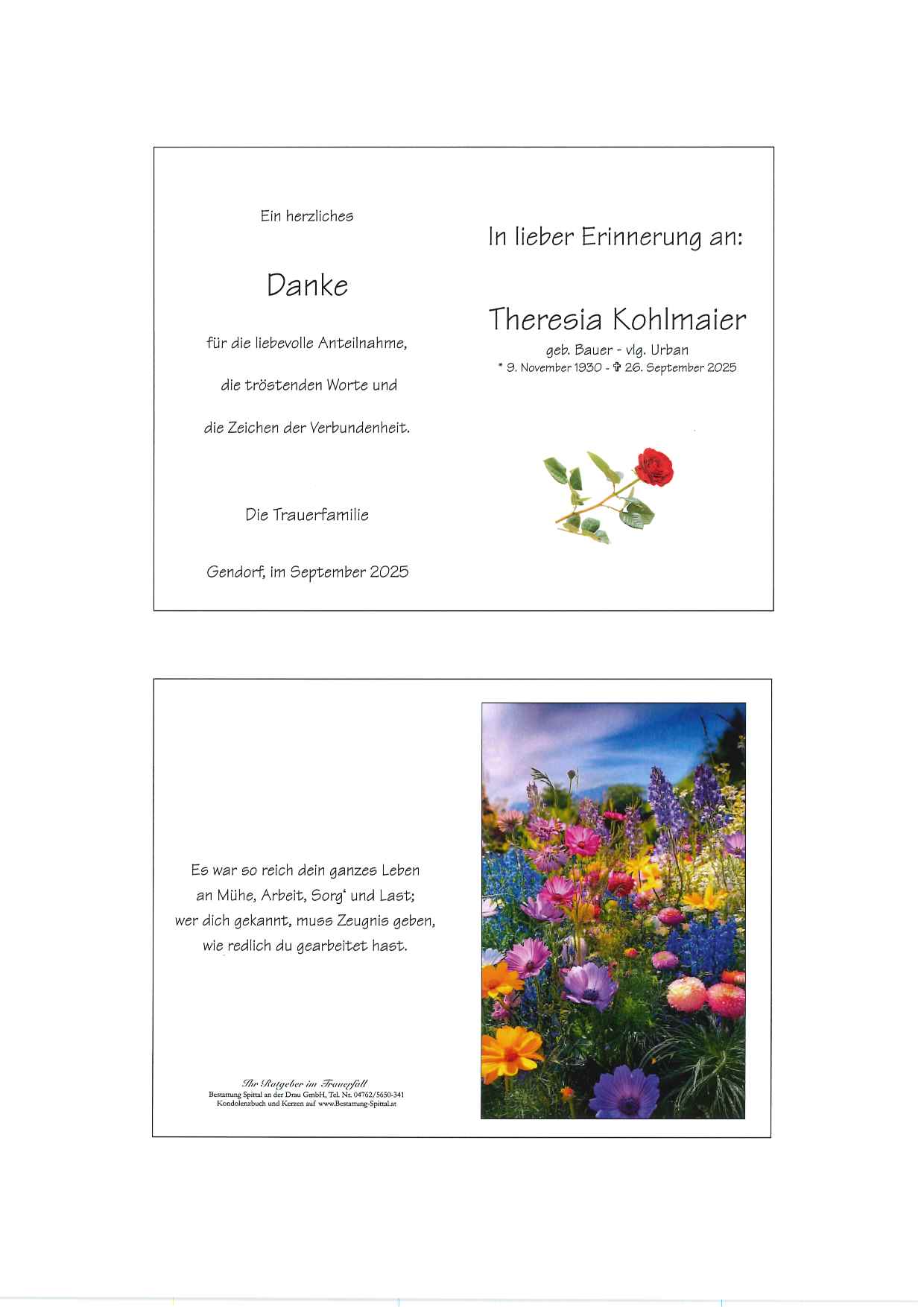 Bestattung wurde durchgeführt von: Gerald Baumgartner/Franz Kramaritsch/Sylvia Wippl Gerald Baumgartner/Franz Kramaritsch/Sylvia Wippl Städtische Bestattungsanstalt Spittal an der Drau Edlinger Straße 55 9800 - Spittal an der Drau Tel.: 04762 5650341 zum Bestatter