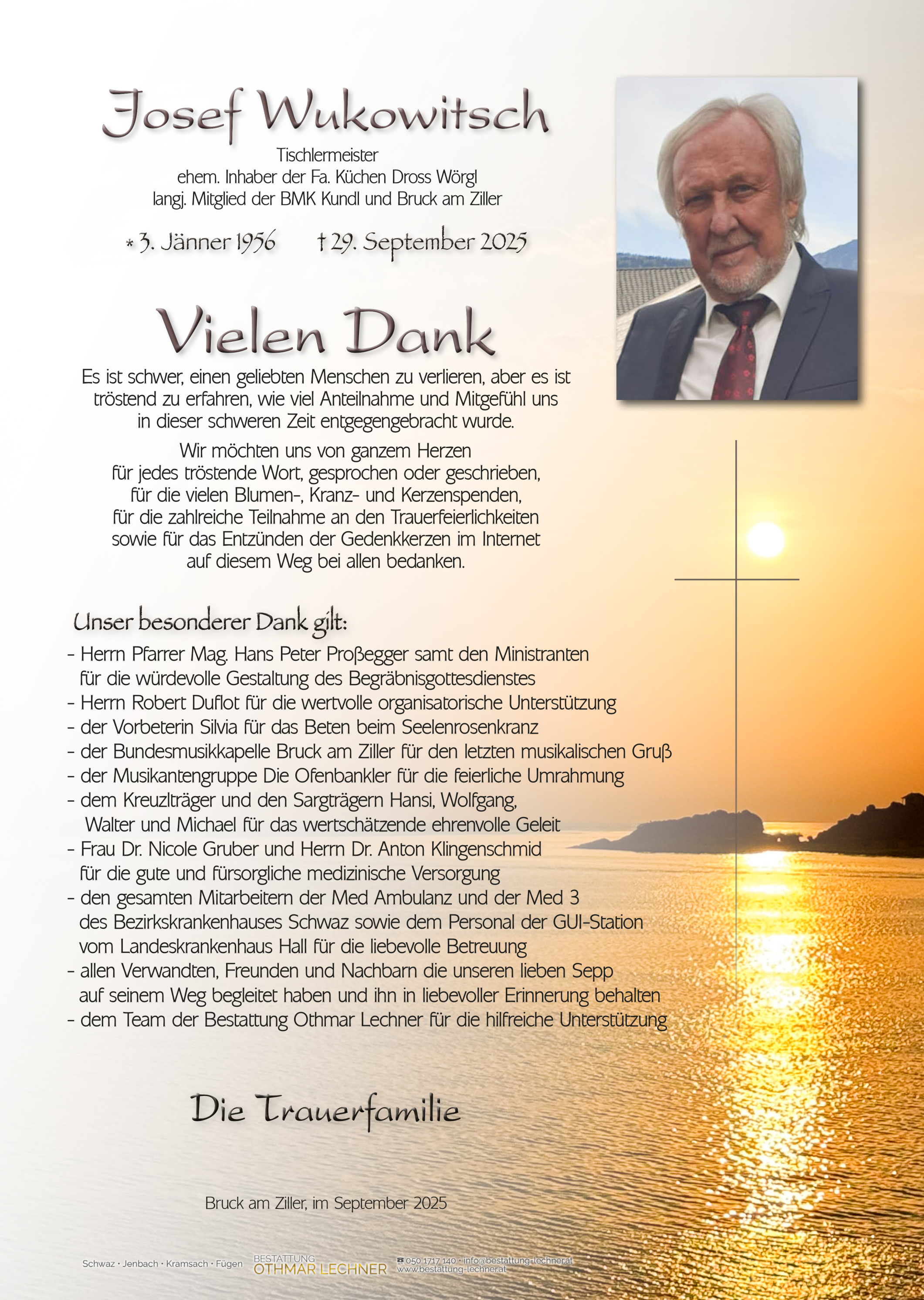 Die Nachricht vom Ableben eures geliebten Josef hat uns heute tief traurig gemacht.