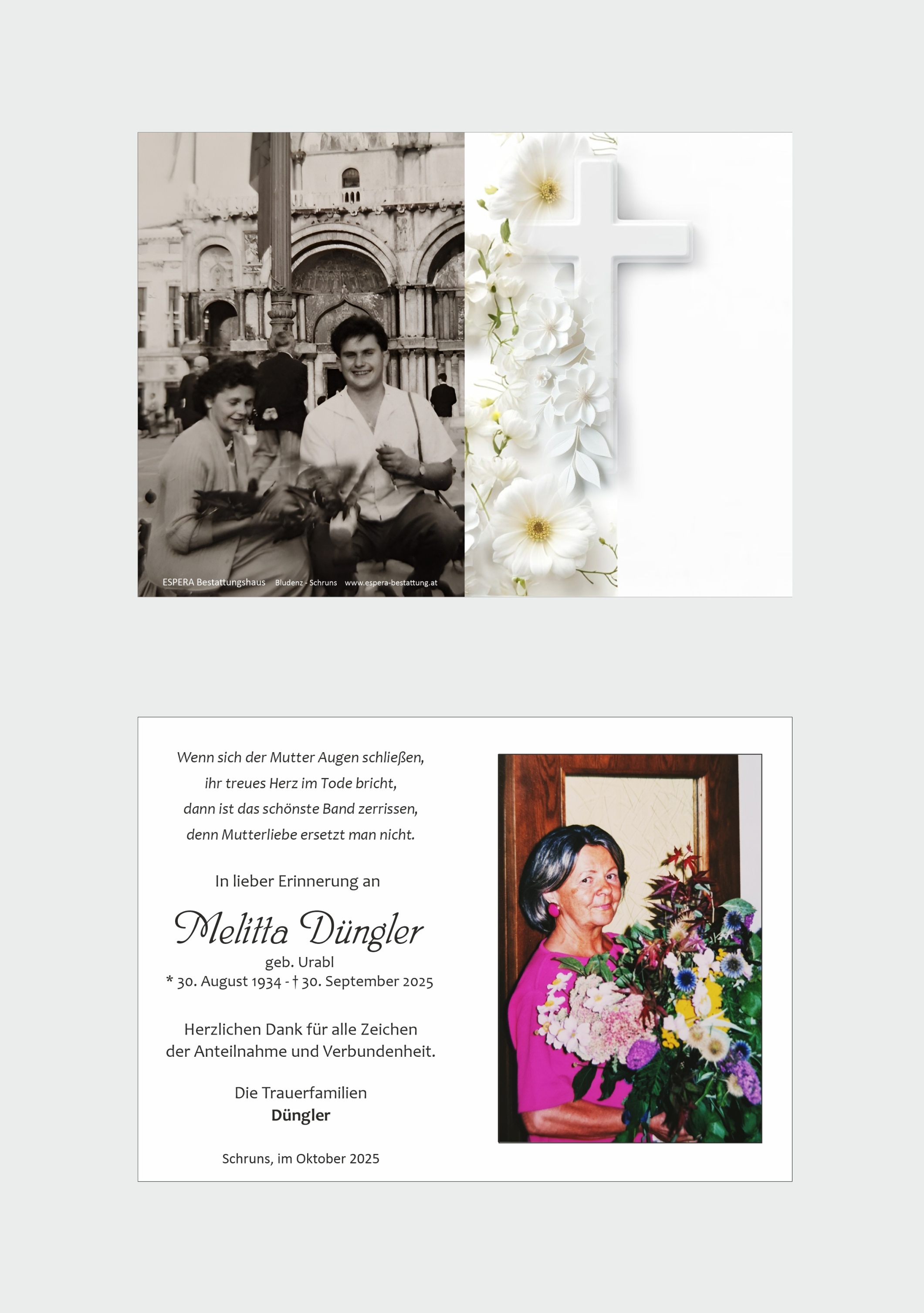 Bestattung wurde durchgeführt von: Espera Bestattungshaus Espera Sturnengasse 26 6700 - Bludenz Tel.: +43 5552 620790 zum Bestatter