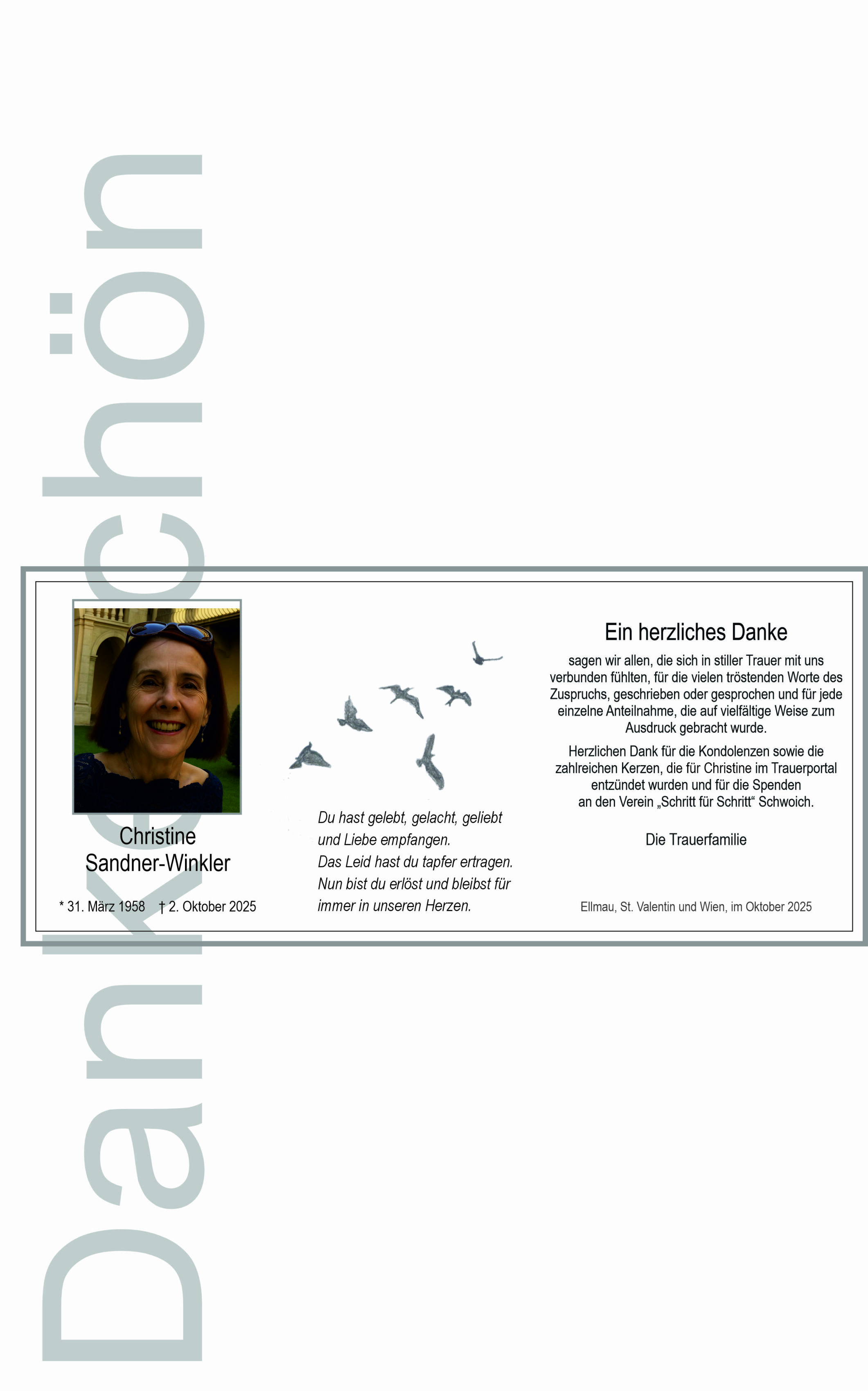 Neue Kerze für Christine Sandner-Winkler entzünden.