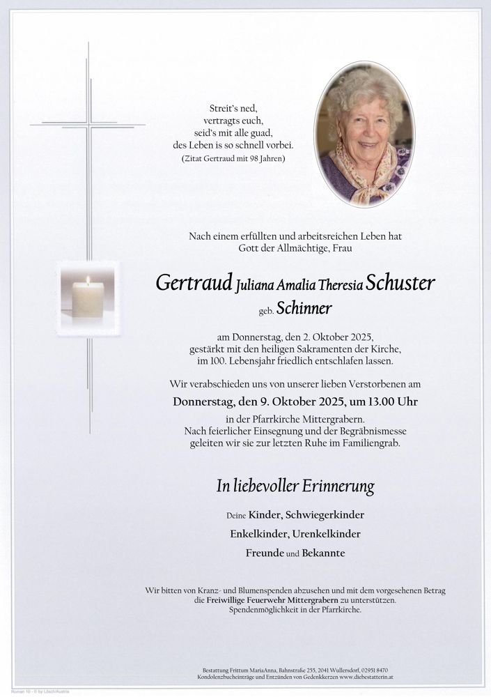 Friedhof Mittergrabern, † 02.10.2025 (99 Jahre)