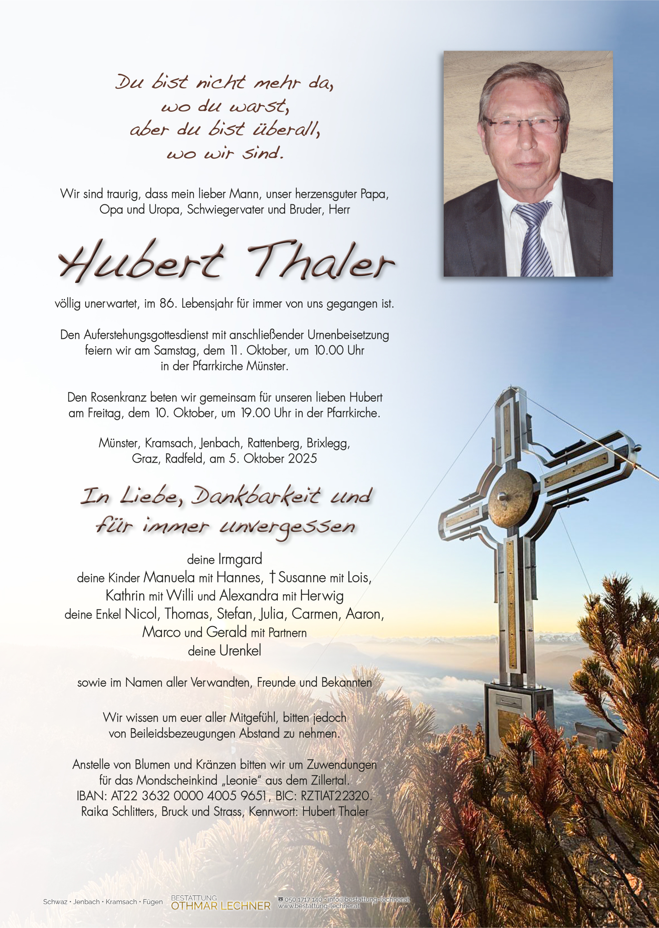 Bestattung wurde durchgeführt von: Manuel Ram Manuel Ram Bestattung Othmar Lechner Husslstraße 40 6130 - Schwaz Tel.: 050 1717 140 zum Bestatter