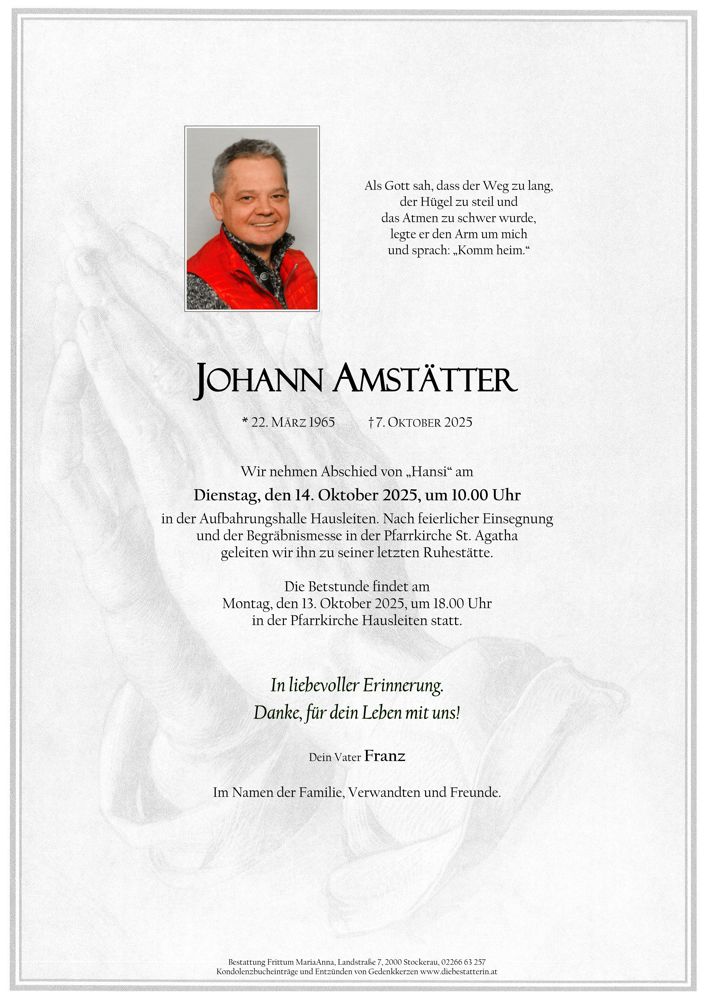 Liebe Familie Amstätter es ist schlimm einen geliebten Menschen zu verlieren ,ich fühle in dieser schweren Zeit mit euch mit.Wünsche euch viel Kraft in dieser schweren Zeit.