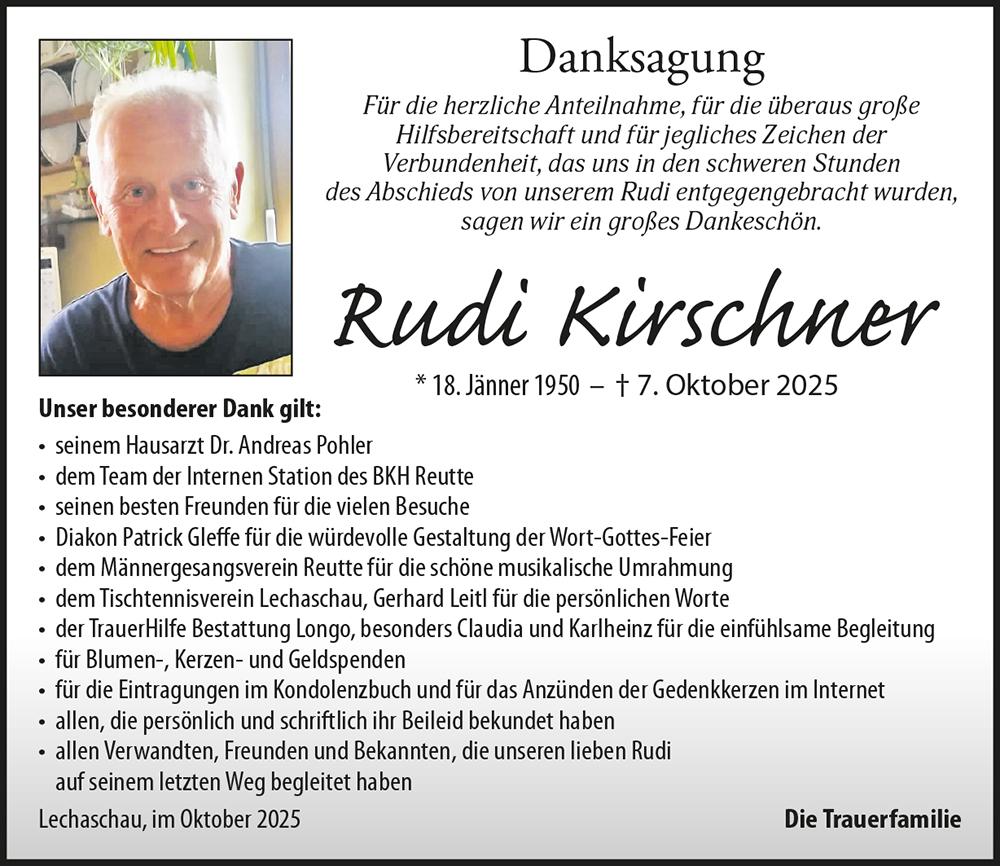 Liebe Traudi wünschen dir viel Kraft in dieser schweren Zeit.13.10.2025 10:19 - Wolf Alfred und Christine