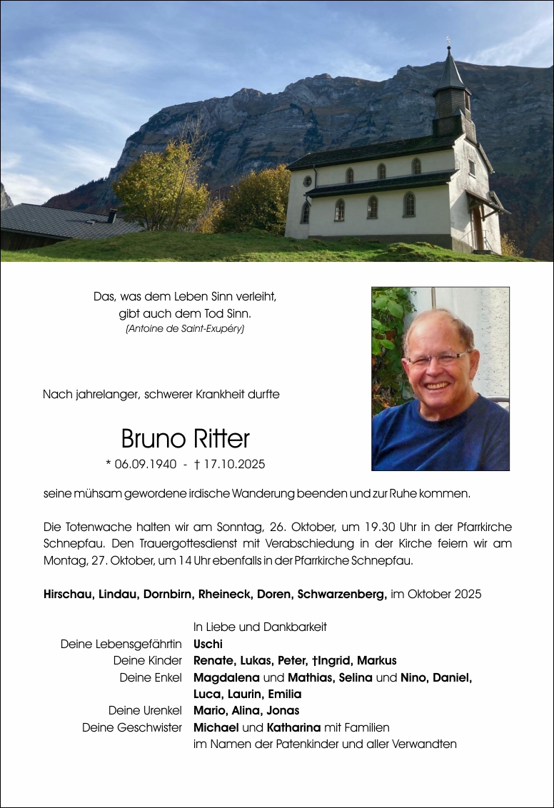 Friedhof Schnepfau, † 17.10.2025 (85 Jahre)