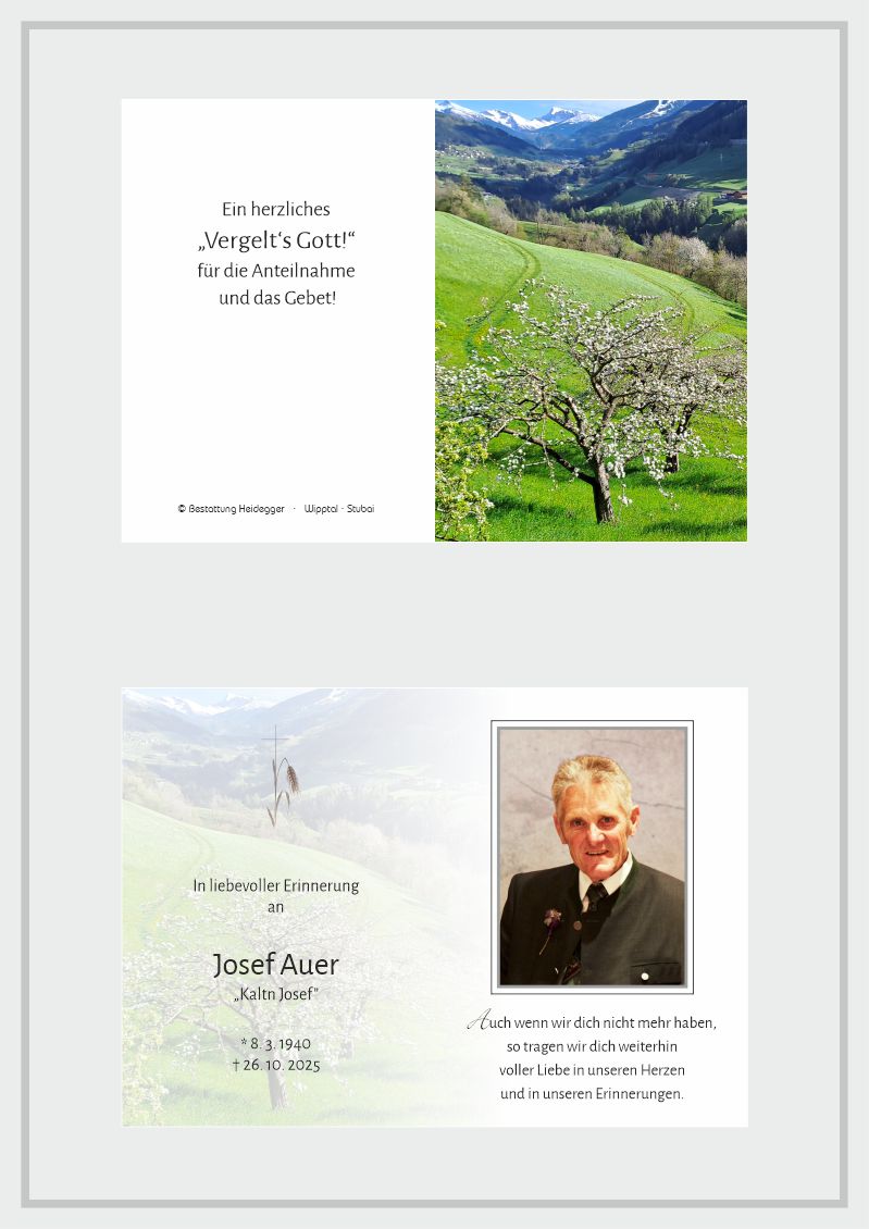 Bestattung wurde durchgeführt von: Karl Neurauter Karl Neurauter Bestattung Heidegger Brennerstraße 69 6150 - Steinach am Brenner Tel.: 05275 5211 zum Bestatter