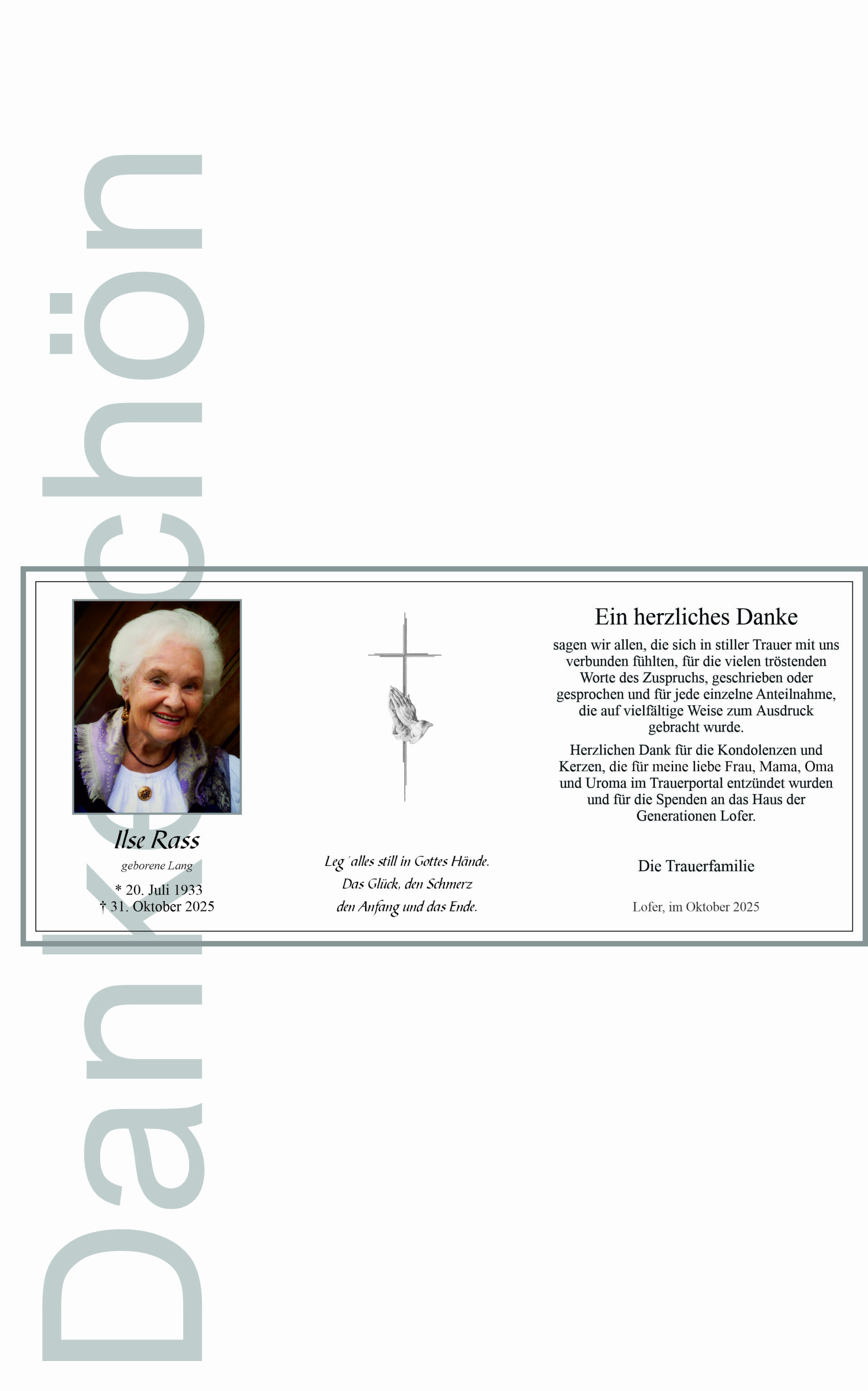 Friedhof Friedhof Lofer, † 31.10.2025 (92 Jahre)