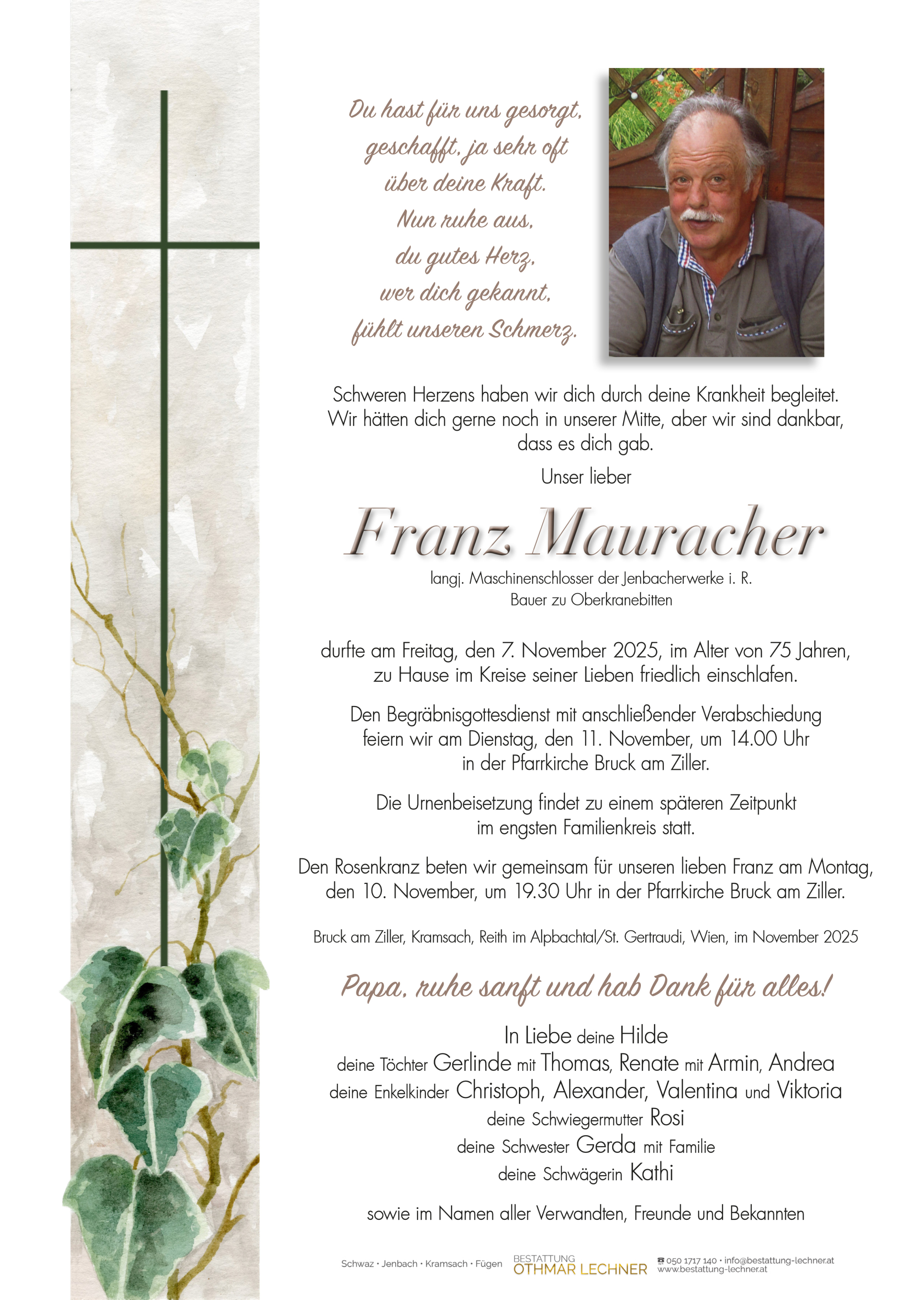 Friedhof Bruck am Ziller, † 07.11.2025 (75 Jahre)