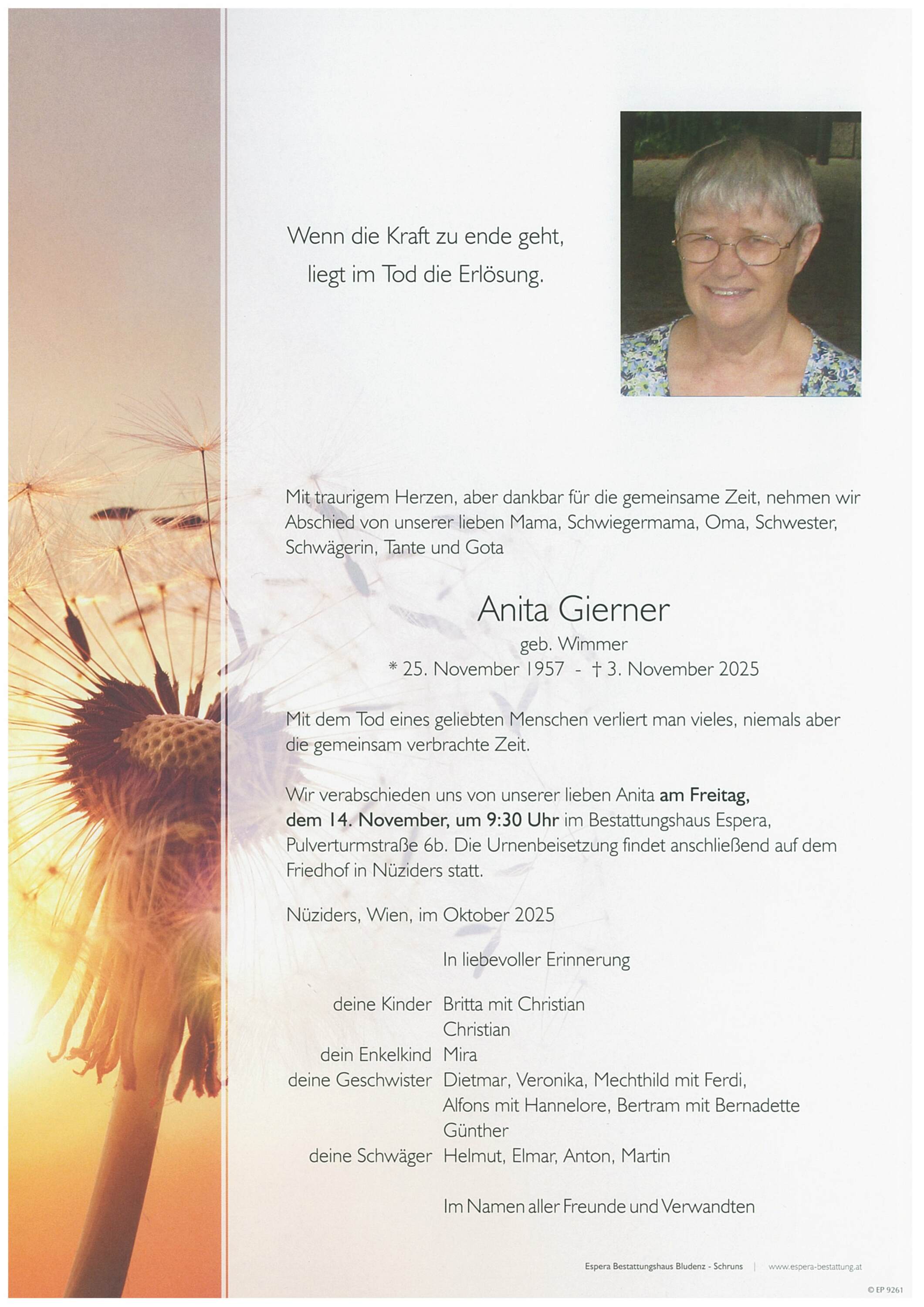 Bestattung wurde durchgeführt von: Espera Bestattungshaus Espera Sturnengasse 26 6700 - Bludenz Tel.: +43 5552 620790 zum Bestatter