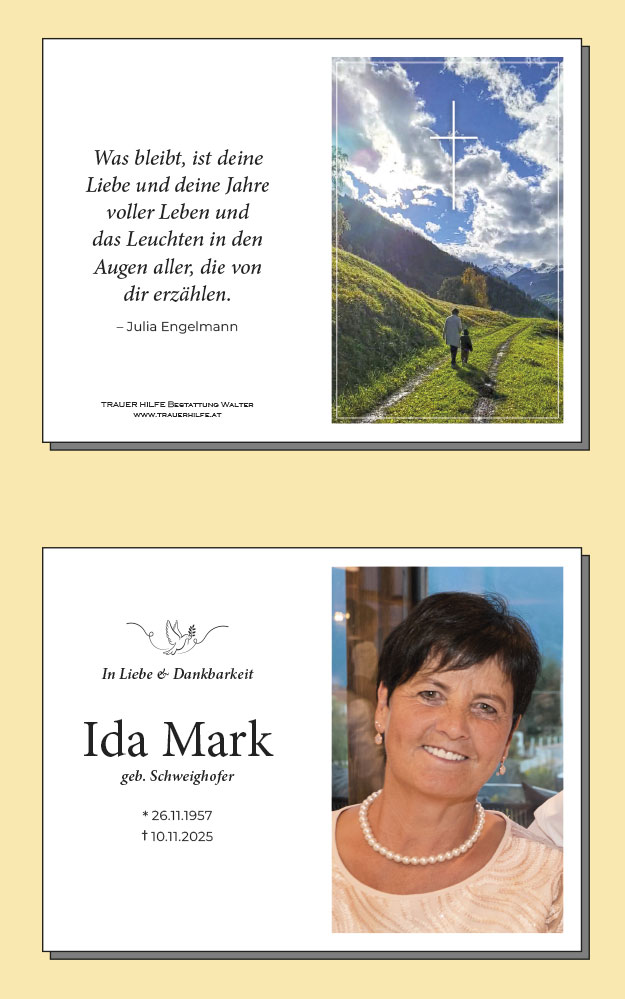Ich bin sehr traurig über ihren Verlust – und zugleich voller Dankbarkeit, dass ich sie gekannt habe. Auch wenn mir bewusst war, wie schwer ihre Krankheit war, trifft mich ihr Tod sehr. Ida war ein Mensch, der Spuren hinterlässt – leise, aber unvergesslich.