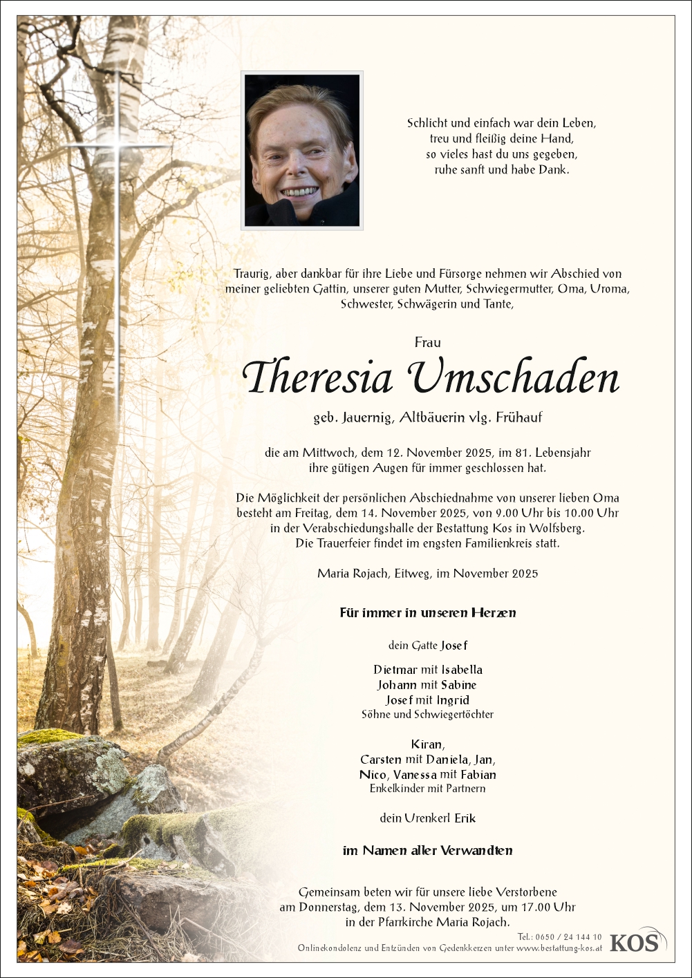 Bestattung wurde durchgeführt von: Familienbetrieb Bestattung Kos Bestattung A. & J. Kos GmbH Krankenhausstraße 2A 9400 - Wolfsberg Tel.: 0650 242 98 98 zum Bestatter