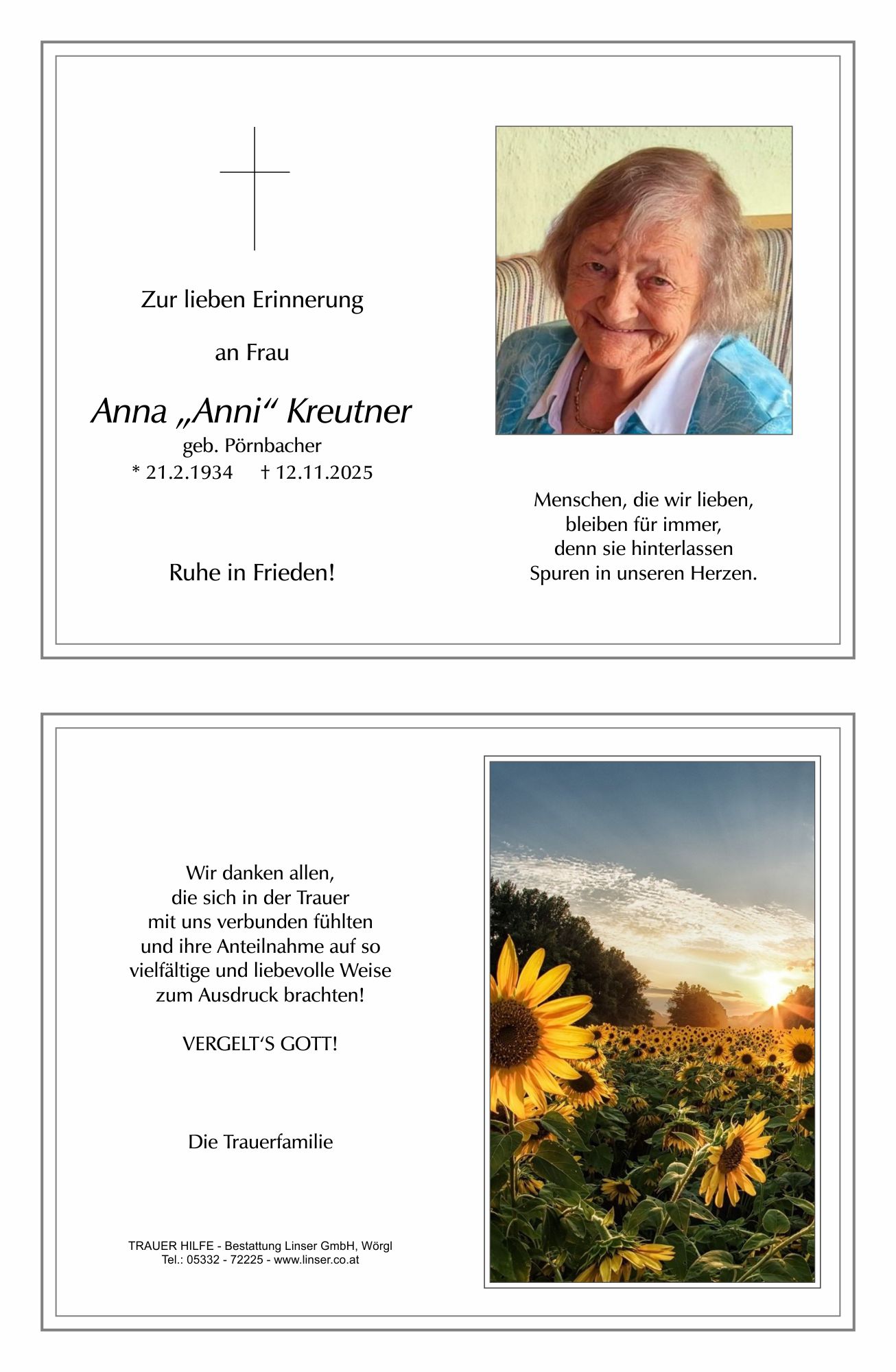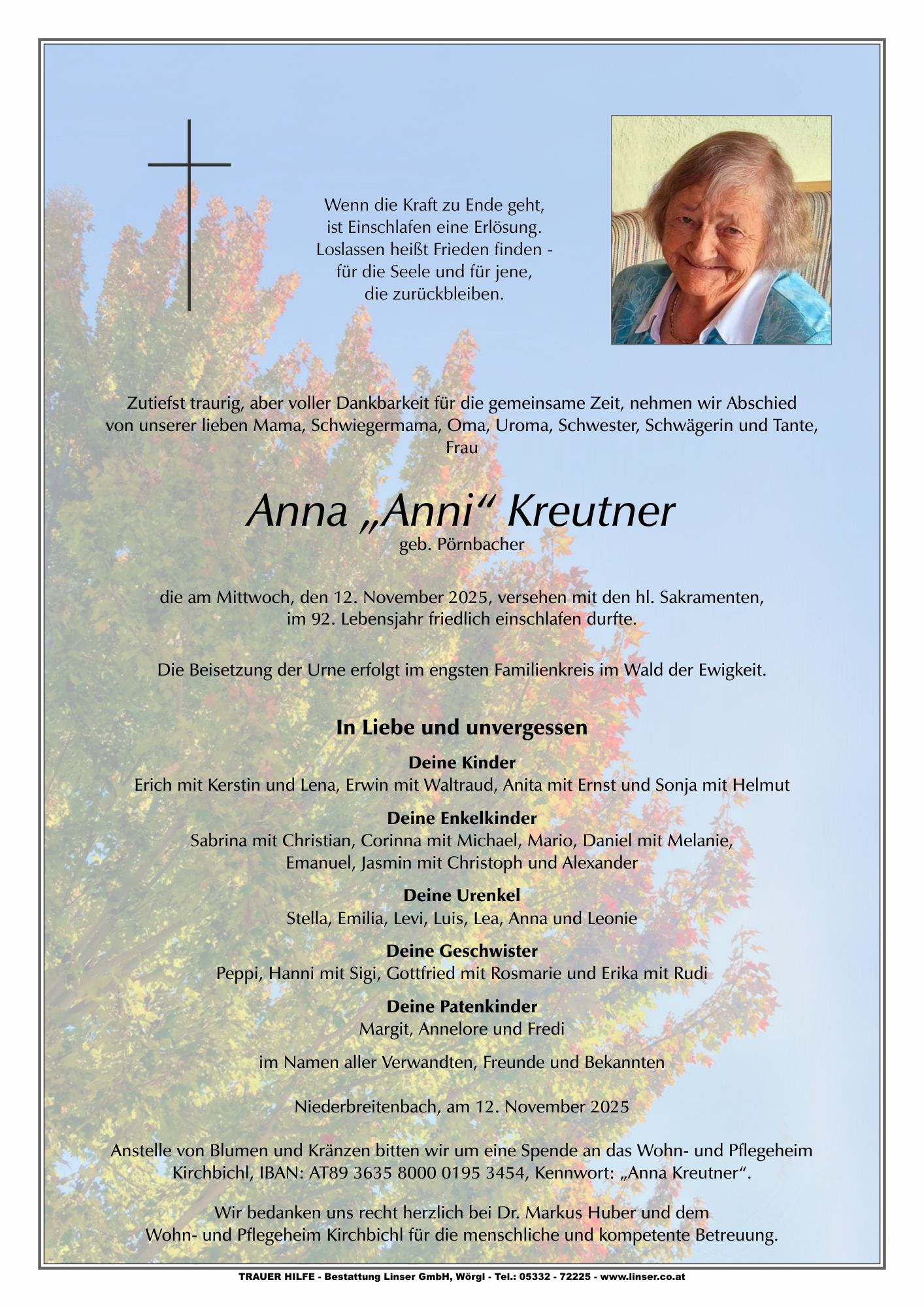 Bestattung wurde durchgeführt von: Walter Linser TrauerHilfe Bestattung Linser GmbH Wildschönauerstraße 41 6300 - Wörgl Tel.: 05332 72225 zum Bestatter