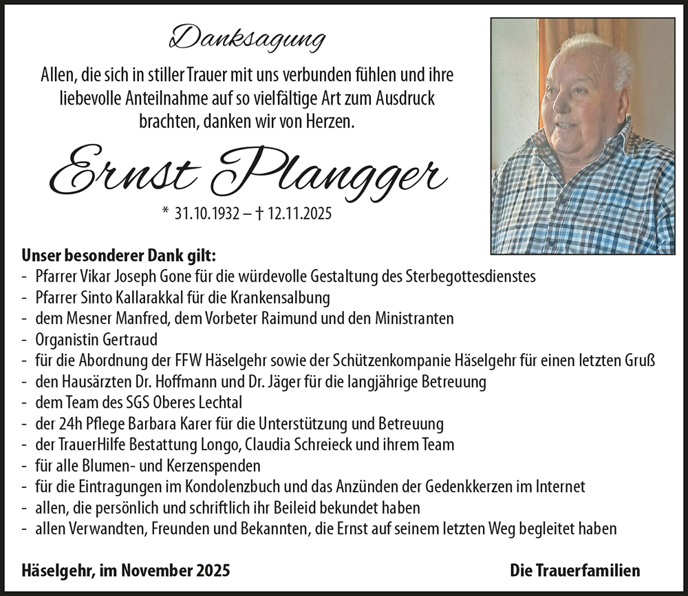 Neue Kerze für Ernst Plangger entzünden.