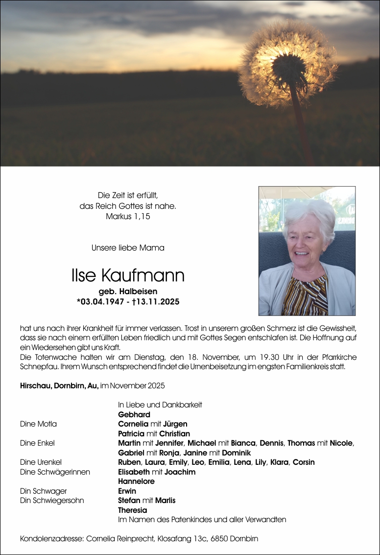 Friedhof Schnepfau, † 13.11.2025 (78 Jahre)