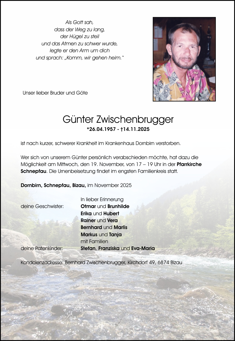 Friedhof Schnepfau, † 14.11.2025 (68 Jahre)