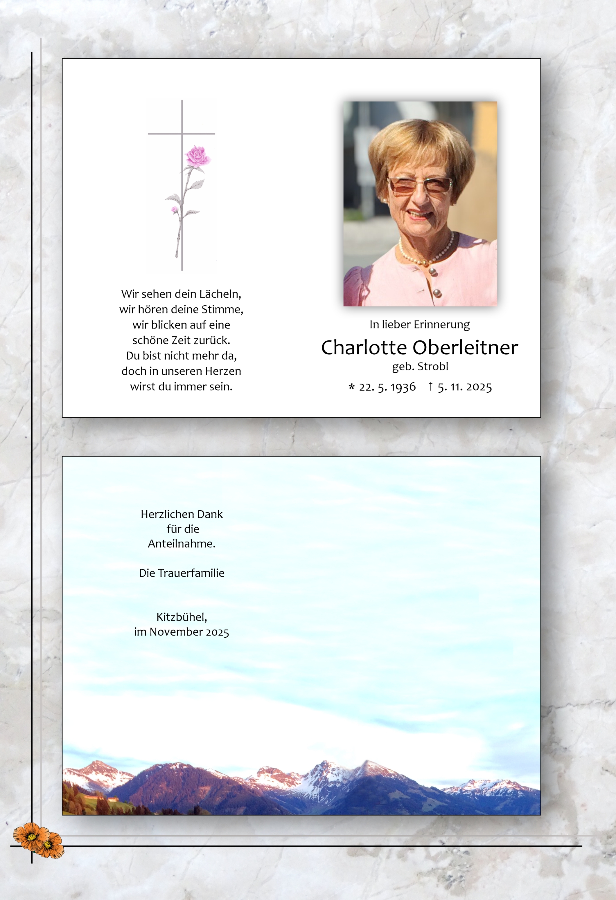 Neue Kerze für Charlotte Oberleitner entzünden.