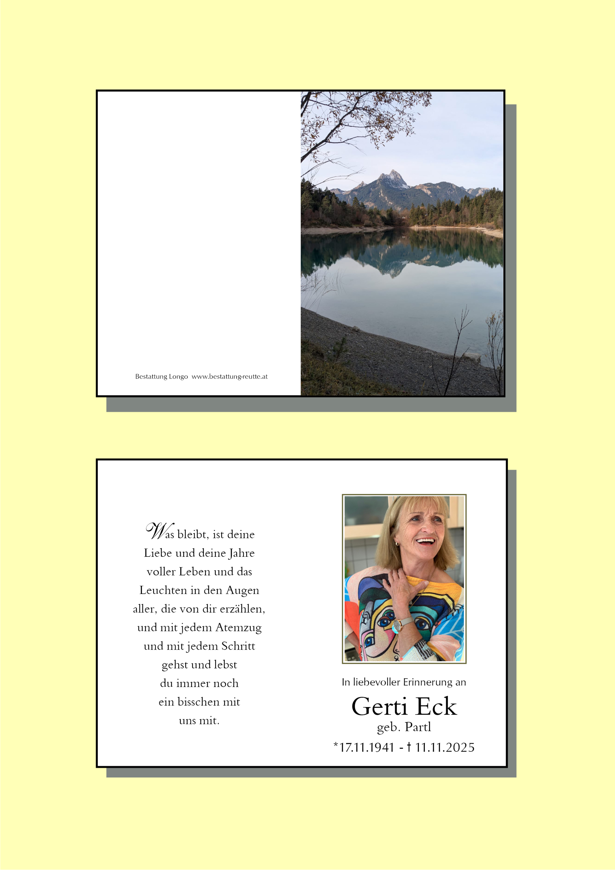 Bestattung wurde durchgeführt von: Claudia Schreieck Bestattung Longo Lechtalerstraße 32a 6600 - Lechaschau Tel.: 05672 62577 zum Bestatter