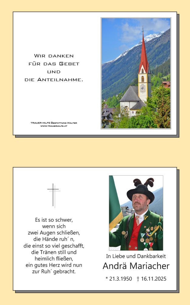 Bestattung wurde durchgeführt von: Bestattung Walter Bestattung Walter Bestattung Walter Nr. 50 6563 - Galtür Tel.: 05443 8312 zum Bestatter