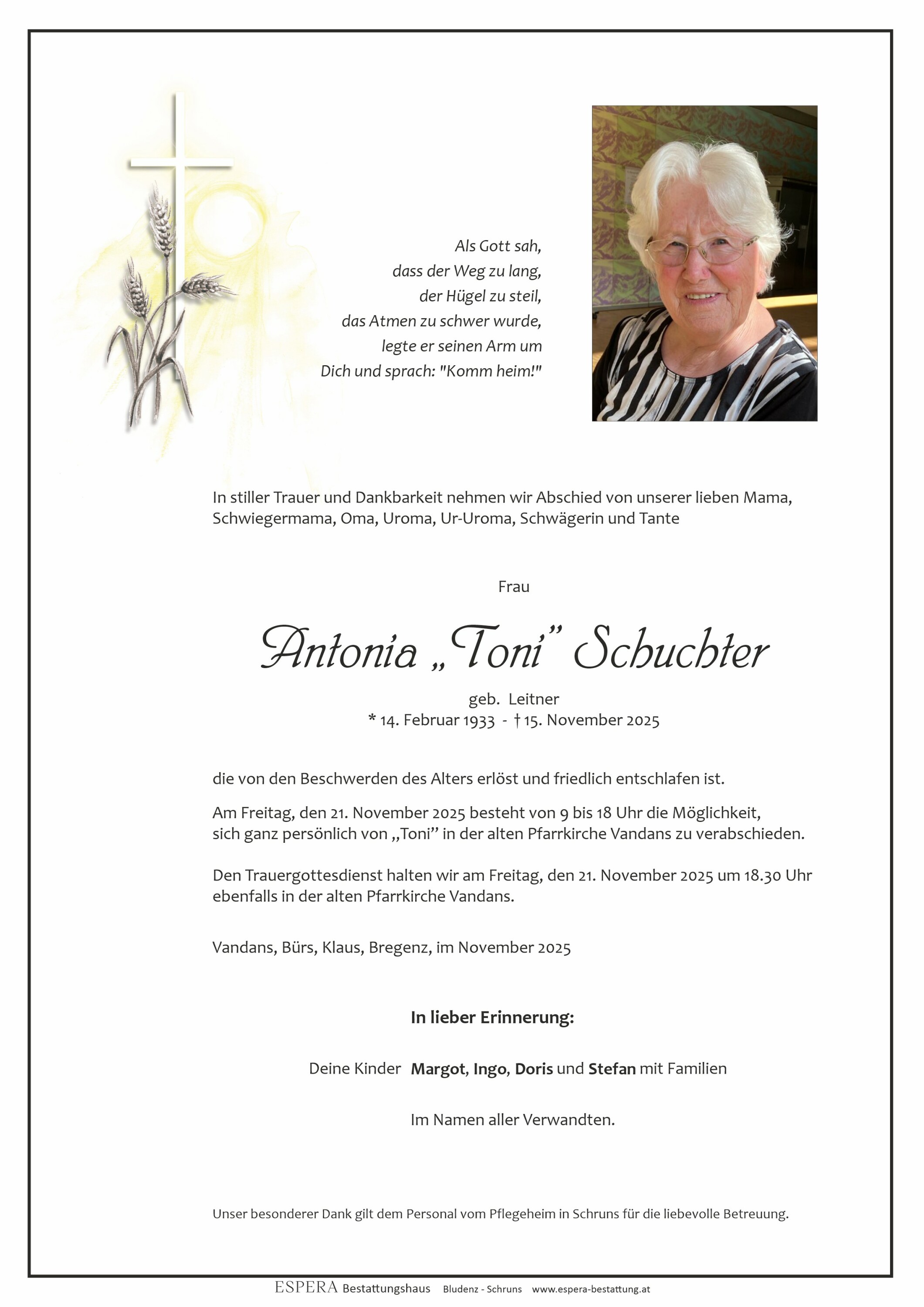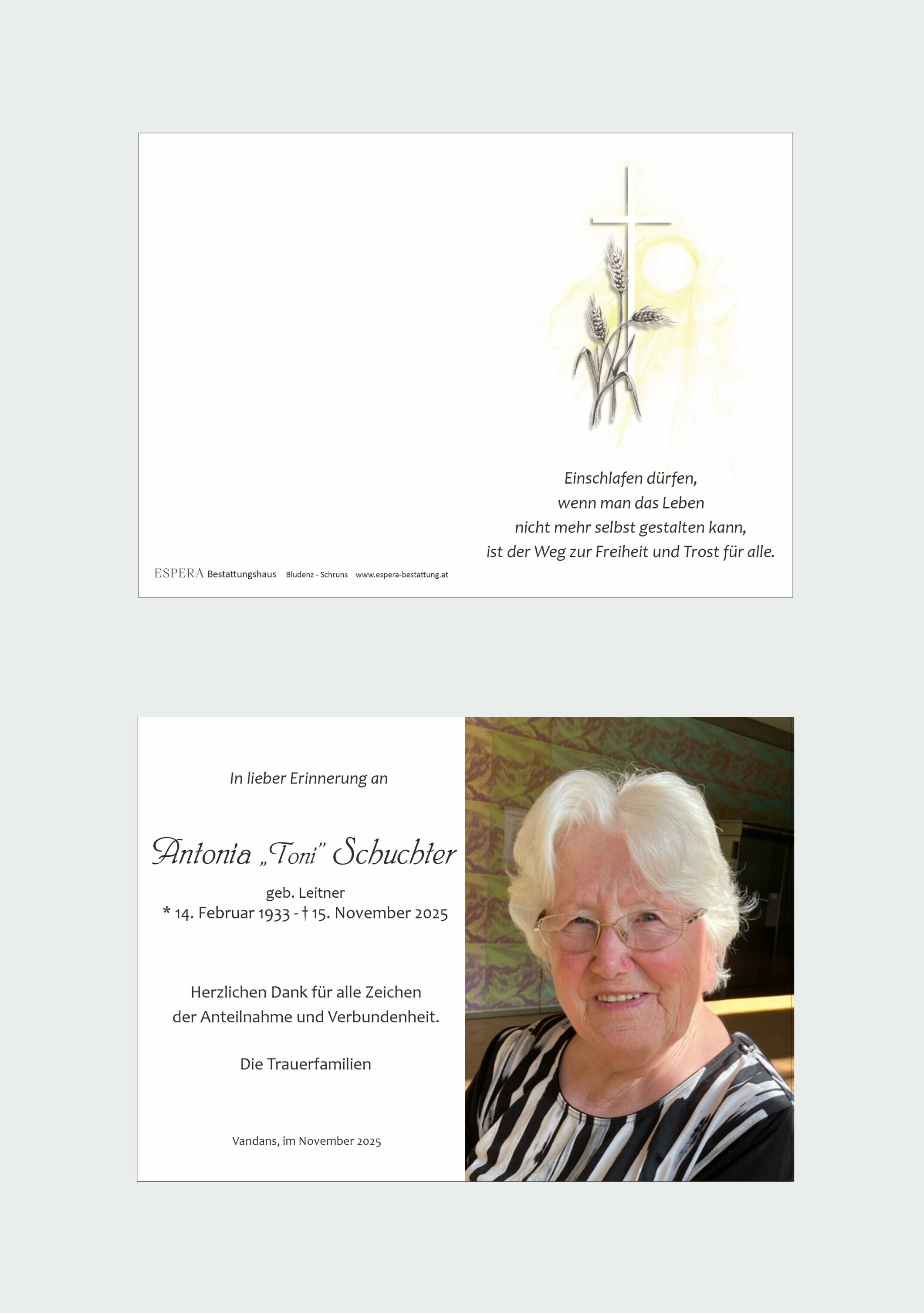 Friedhof Vandans, † 15.11.2025 (92 Jahre)