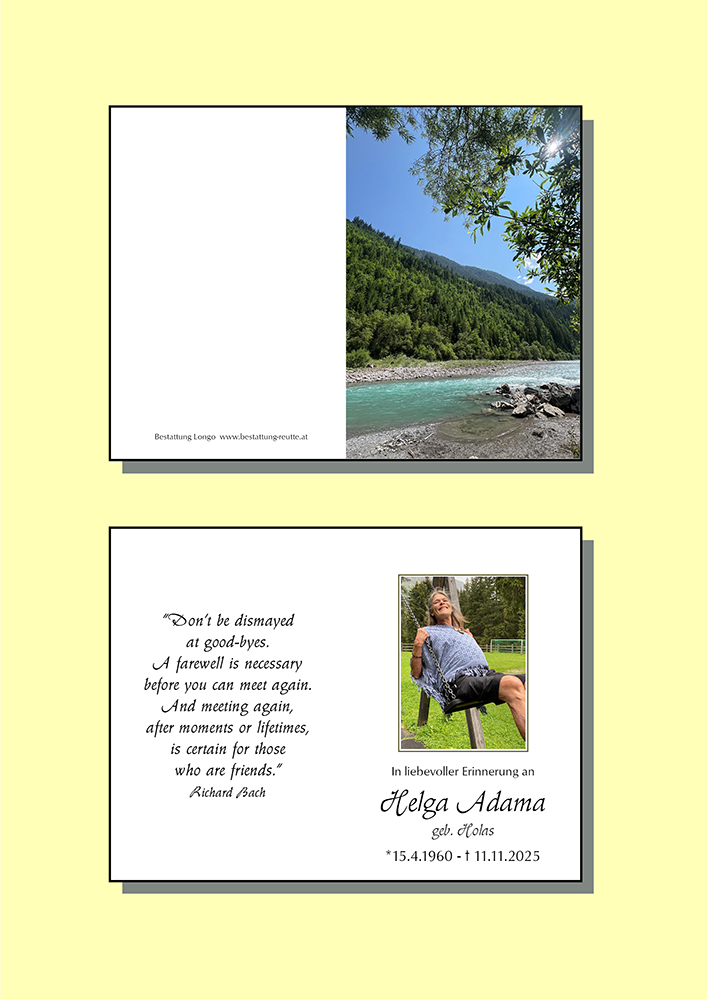 Im Namen des Pensionistenverbandes der Ortsgruppe Lechaschau darf ich Euch unser tiefempfundenes Mitgefühl ausdrücken. In dieser schweren Zeit des Abschiednehmens wünschen wir Euch viel Kraft und Zuversicht. Wir werden Helga stets ein ehrendes Andenken bewahren.