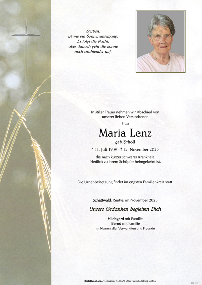 Bestattung wurde durchgeführt von: Claudia Schreieck Bestattung Longo Lechtalerstraße 32a 6600 - Lechaschau Tel.: 05672 62577 zum Bestatter