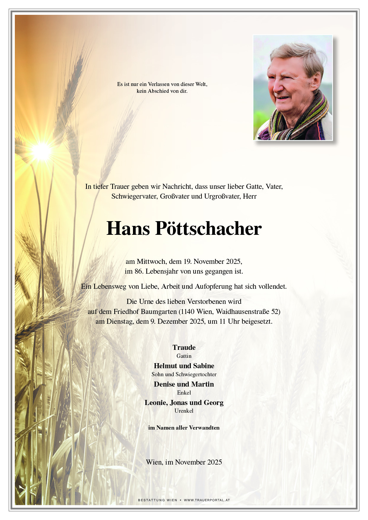 Friedhof † 19.11.2025 (85 Jahre)
