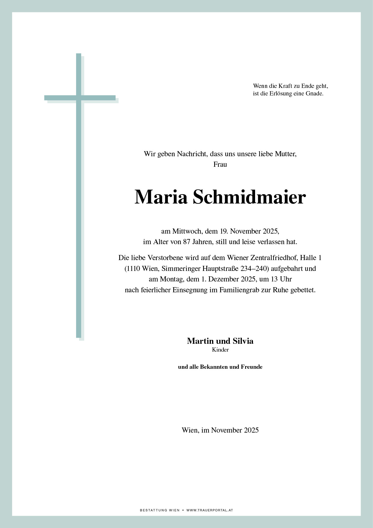 Friedhof † 19.11.2025 (87 Jahre)