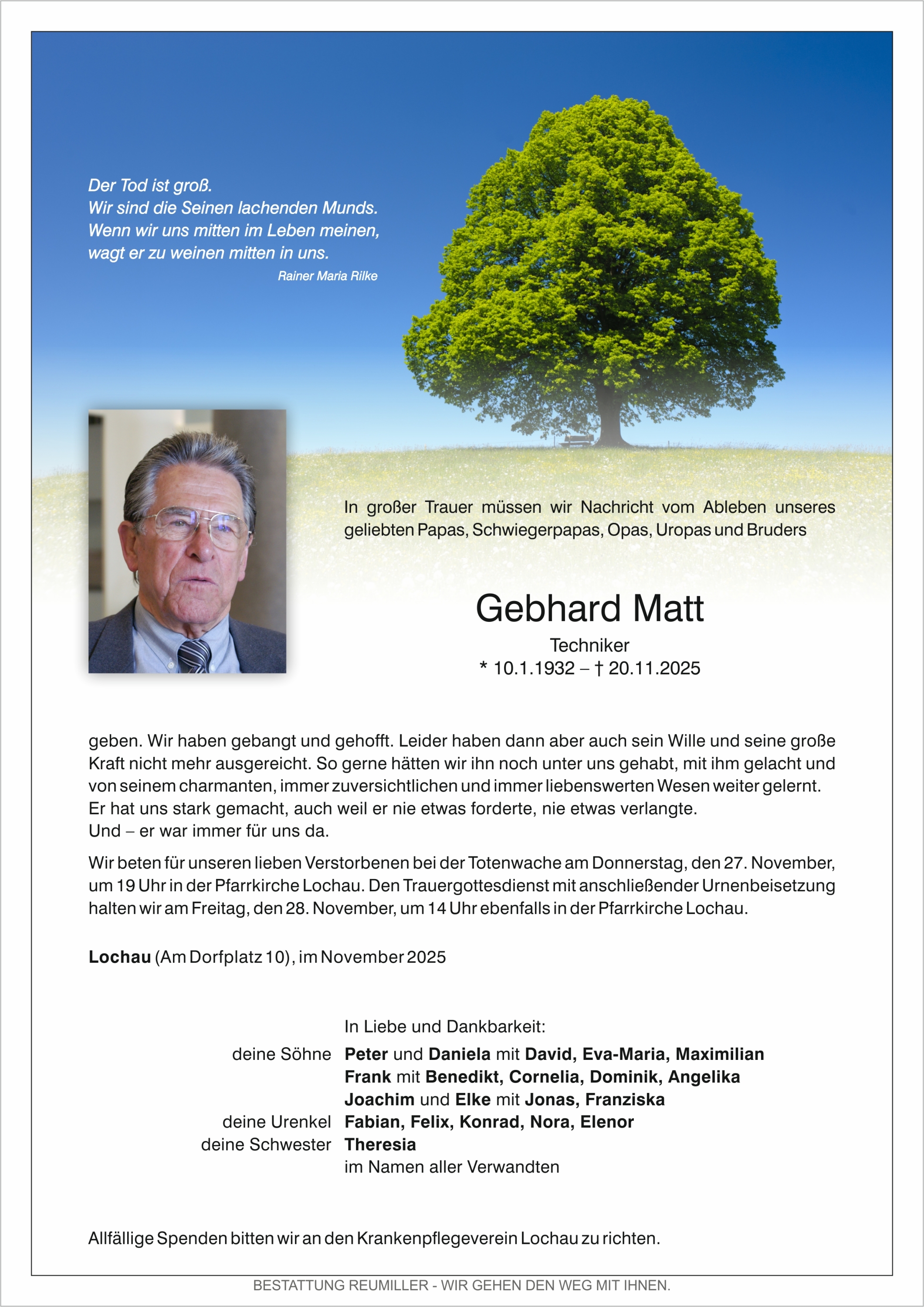 Friedhof Lochau, † 20.11.2025 (93 Jahre)
