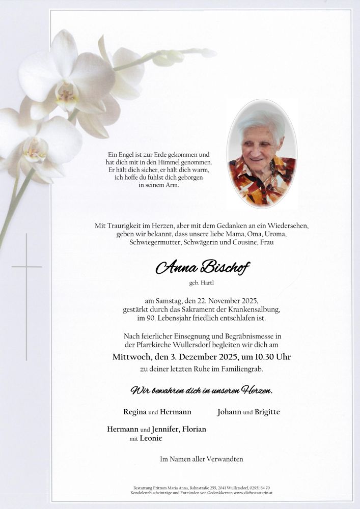 Bestattung wurde durchgeführt von: Frittum Maria Anna TrauerHilfe Bestattung Frittum Bahnstrasse 255 2041 - Wullersdorf Tel.: 050 1717-600 zum Bestatter
