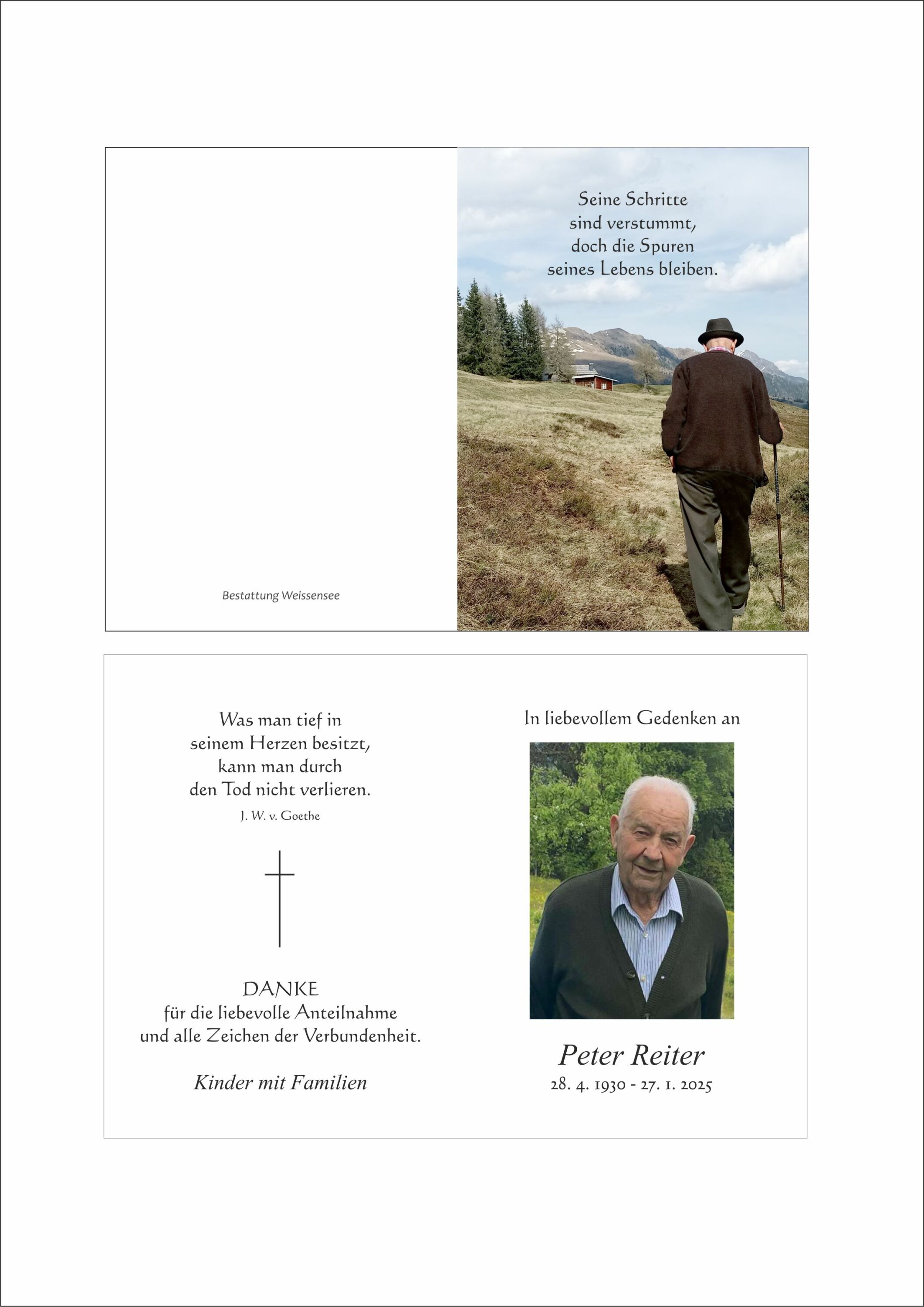 Bestattung wurde durchgeführt von: Markus Ertl Bestattung Weissensee Neusach 26 9762 - Weißensee Tel.: 04713 22 29 zum Bestatter