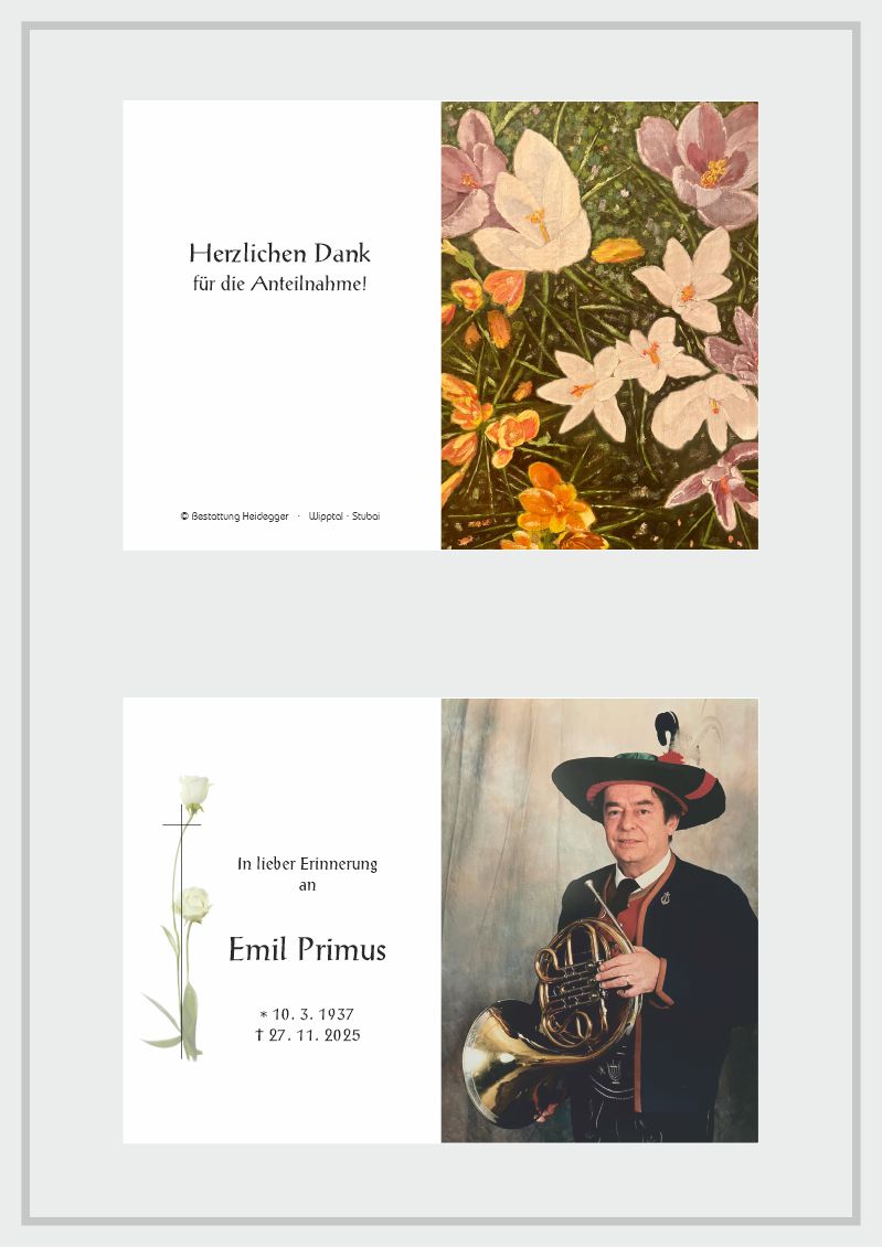 Bestattung wurde durchgeführt von: Karl Neurauter Karl Neurauter Bestattung Heidegger Brennerstraße 69 6150 - Steinach am Brenner Tel.: 05275 5211 zum Bestatter
