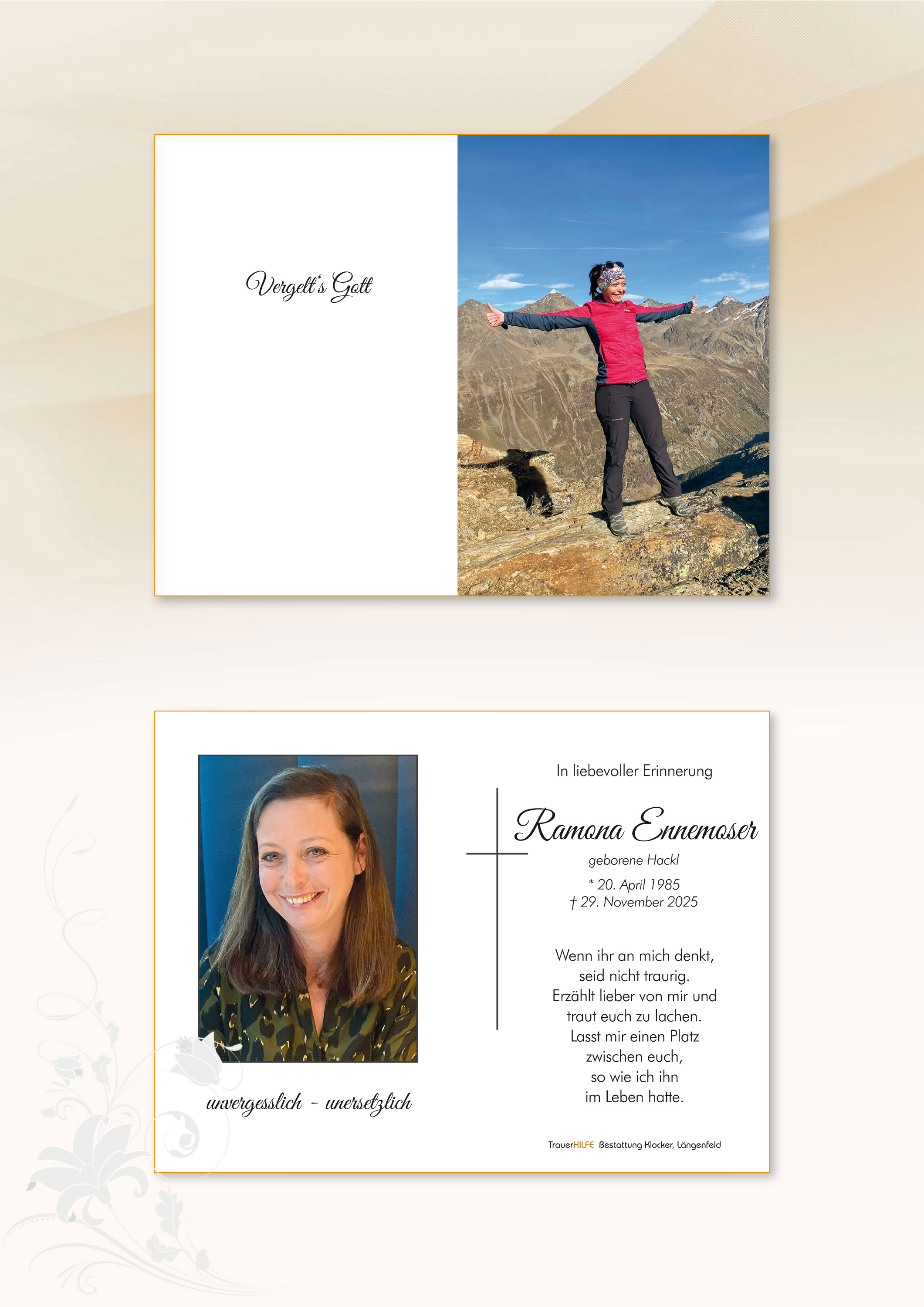 Ramona, machs guat im Himmel und pass fest auf Leon und Louis auf!02.12.2025 19:22 - Stefan, Sabine und Mona Hackl