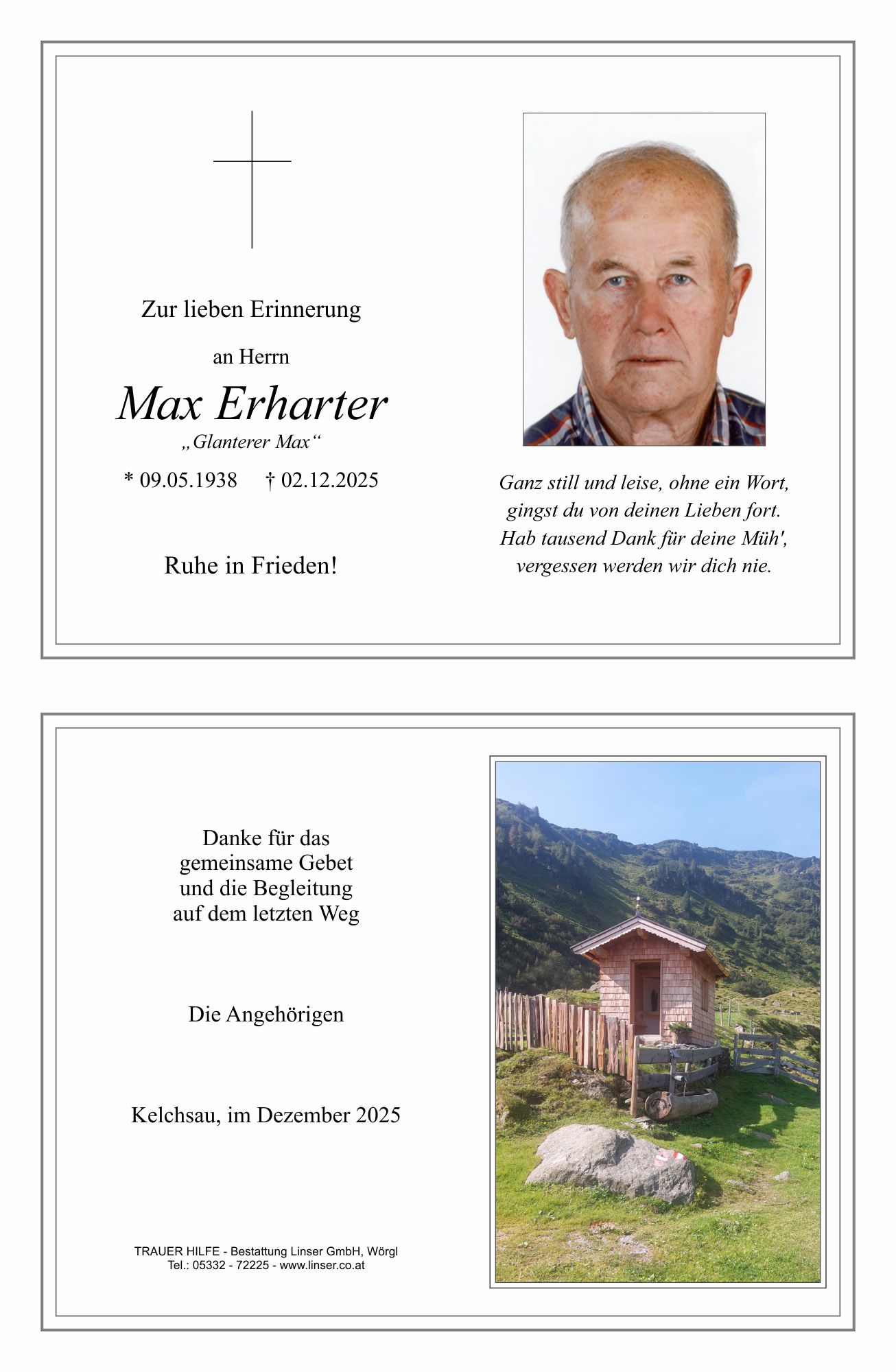 Bestattung wurde durchgeführt von: Walter Linser TrauerHilfe Bestattung Linser GmbH Wildschönauerstraße 41 6300 - Wörgl Tel.: 05332 72225 zum Bestatter