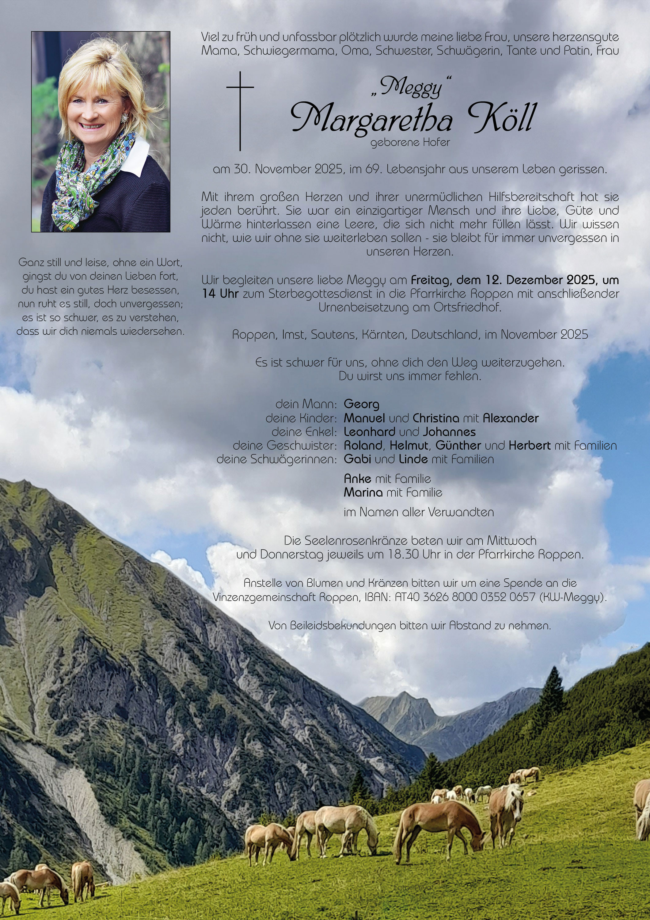 Ich bin erschüttert und traurig über den Heimgang von Maggy und wünsche euch in dieser schweren Zeit viel Kraft, Zusammenhalt und liebevolle Erinnerungen, die euch tragen