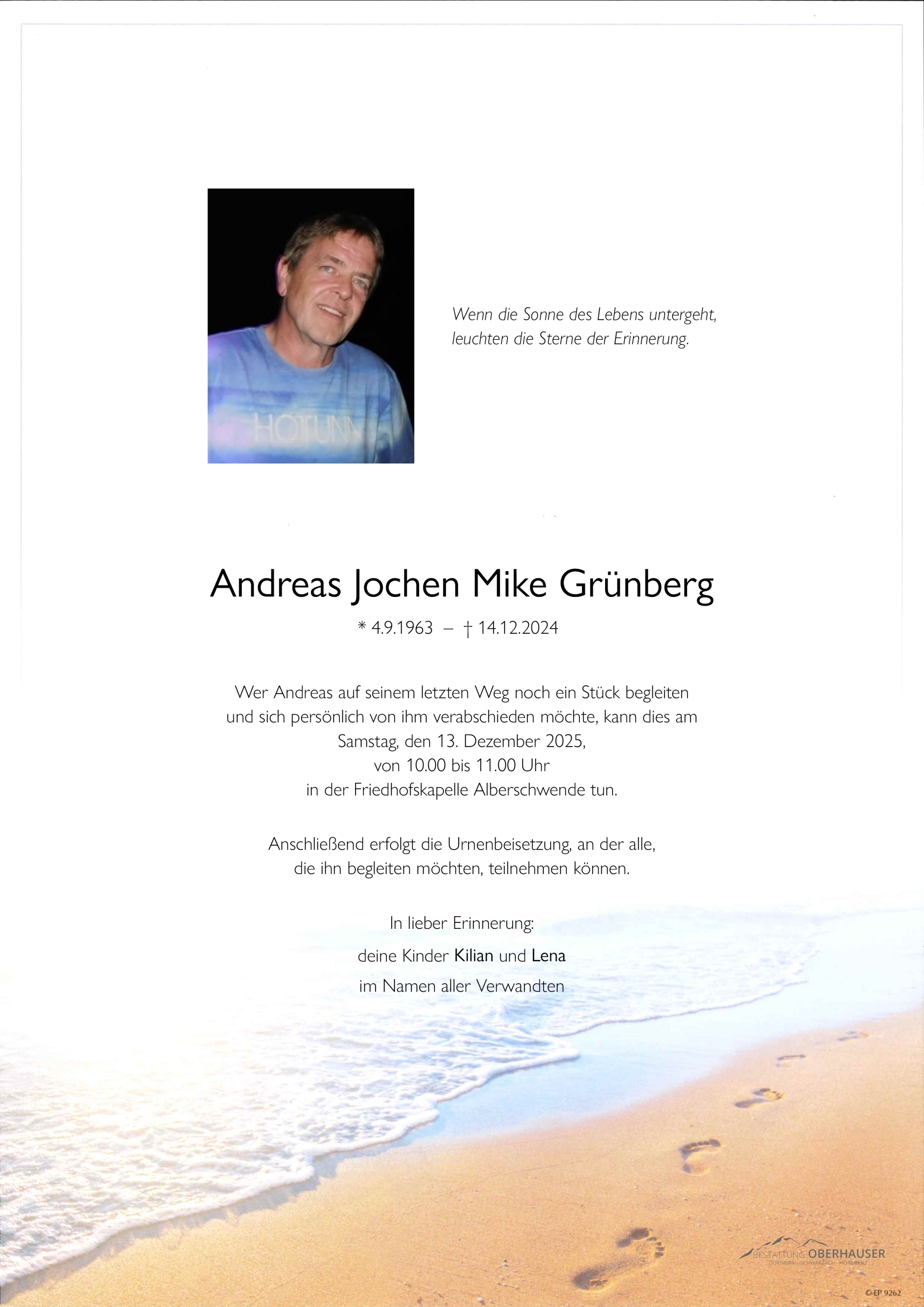Friedhof Alberschwende, † 14.12.2024 (61 Jahre)