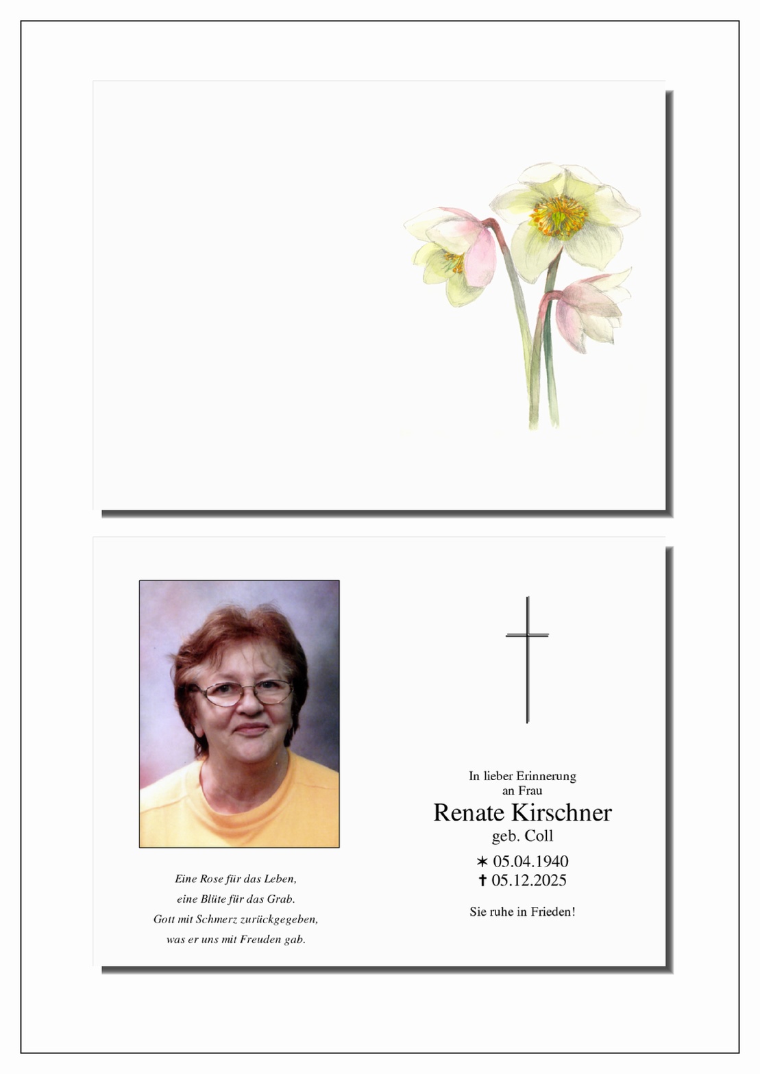 Neue Kerze für Renate Kirschner entzünden.
