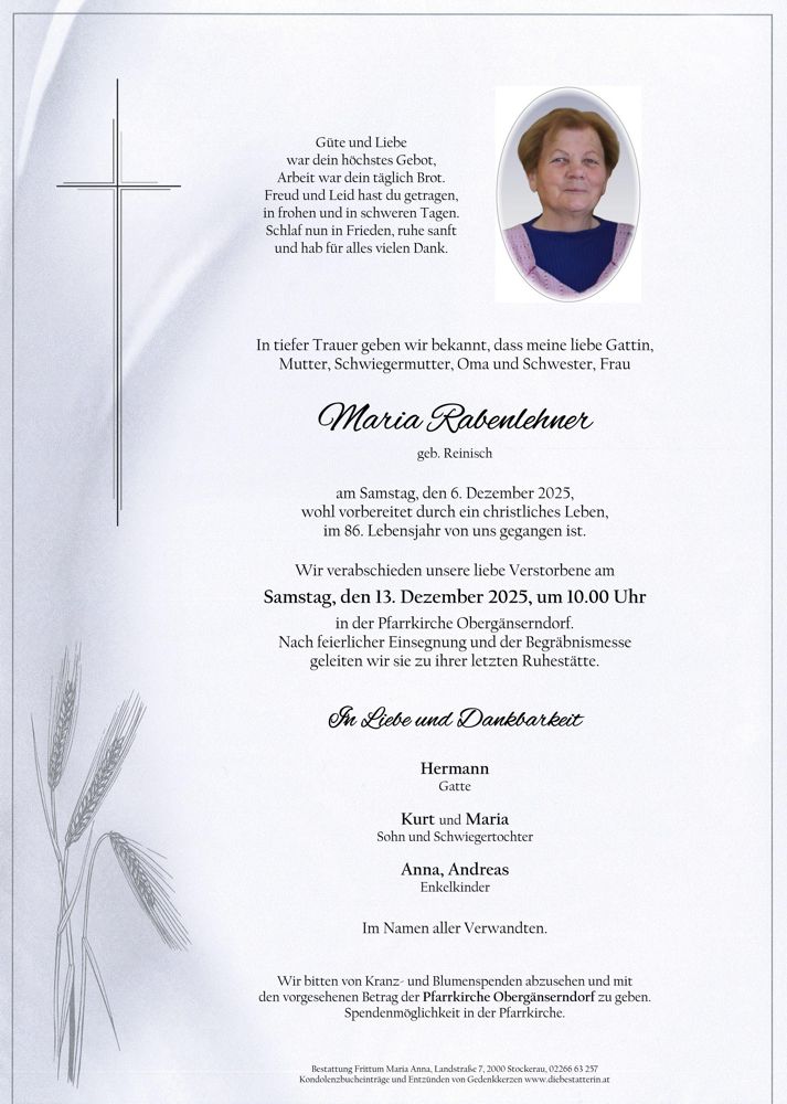 Friedhof Obergänserndorf, † 06.12.2025 (85 Jahre)