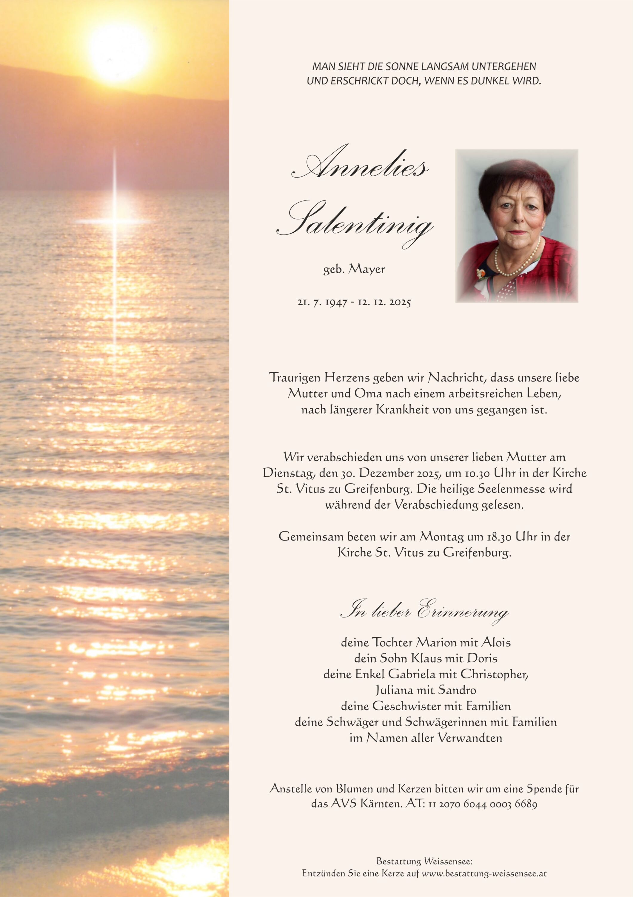 Friedhof 9761 Greifenburg, † 12.12.2025 (78 Jahre)