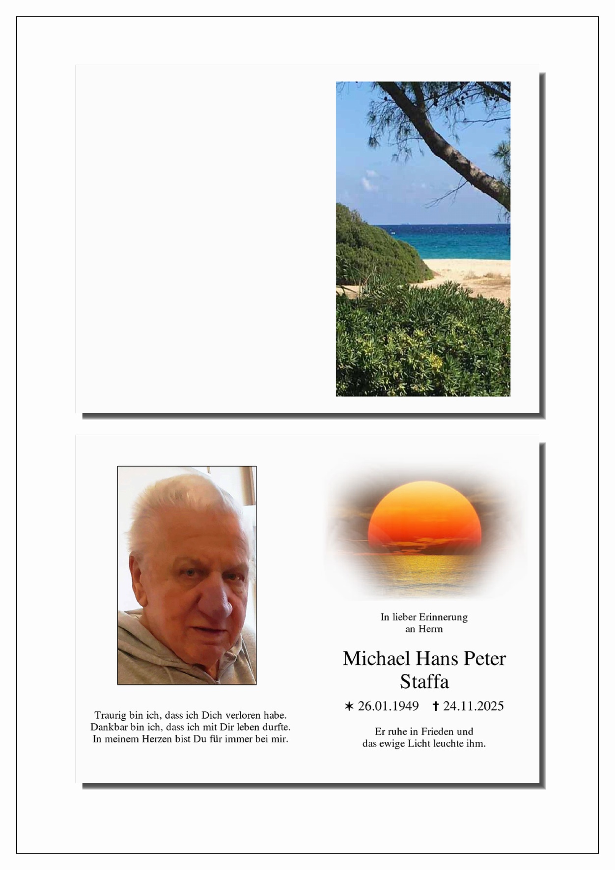 Bestattung wurde durchgeführt von: Mag. Martin Müller Concordia Bestattung 6020 - Innsbruck Reichenauer Str. 95 6060 - Hall i. T. Salzburger Str. 33 Tel.: 0512 34 34 33 Tel.: 05223 57 2 54 zum Bestatter