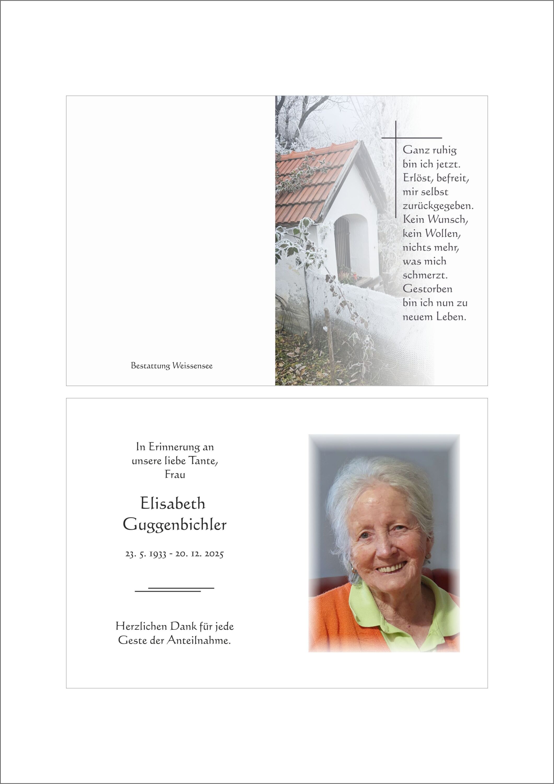 Neue Kerze für Elisabeth Guggenbichler entzünden.