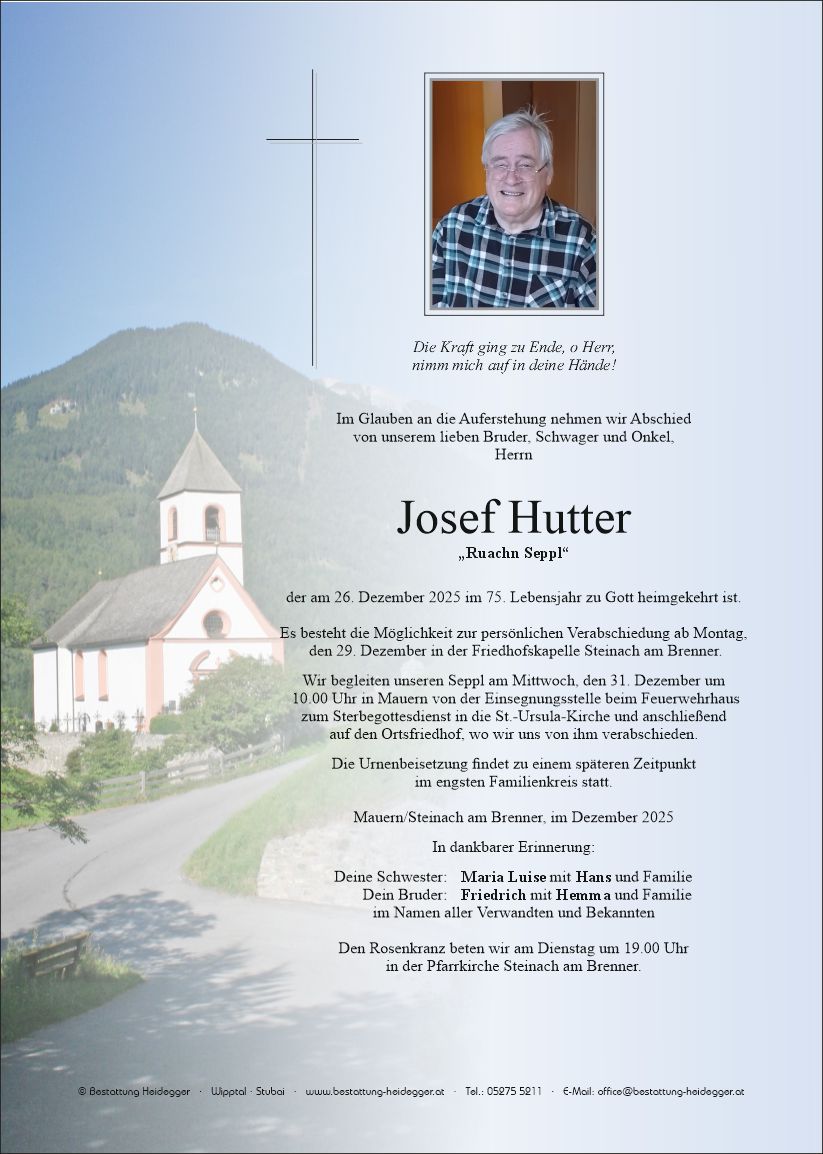 Bestattung wurde durchgeführt von: Karl Neurauter Karl Neurauter Bestattung Heidegger Brennerstraße 69 6150 - Steinach am Brenner Tel.: 05275 5211 zum Bestatter