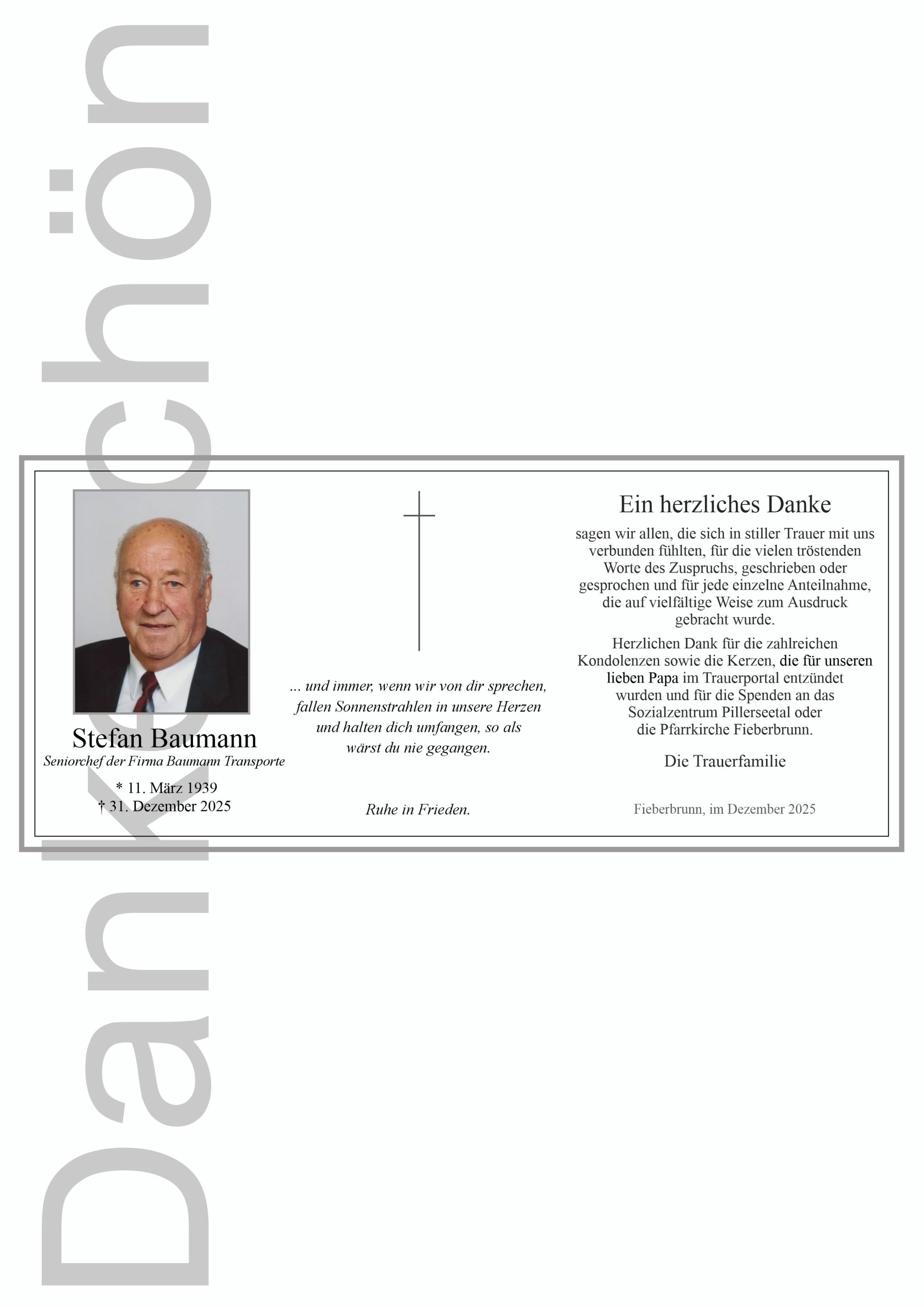 Friedhof Friedhof Fieberbrunn, † 31.12.2025 (86 Jahre)
