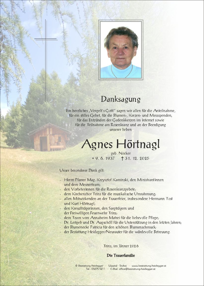Neue Kerze für Agnes Hörtnagl entzünden.