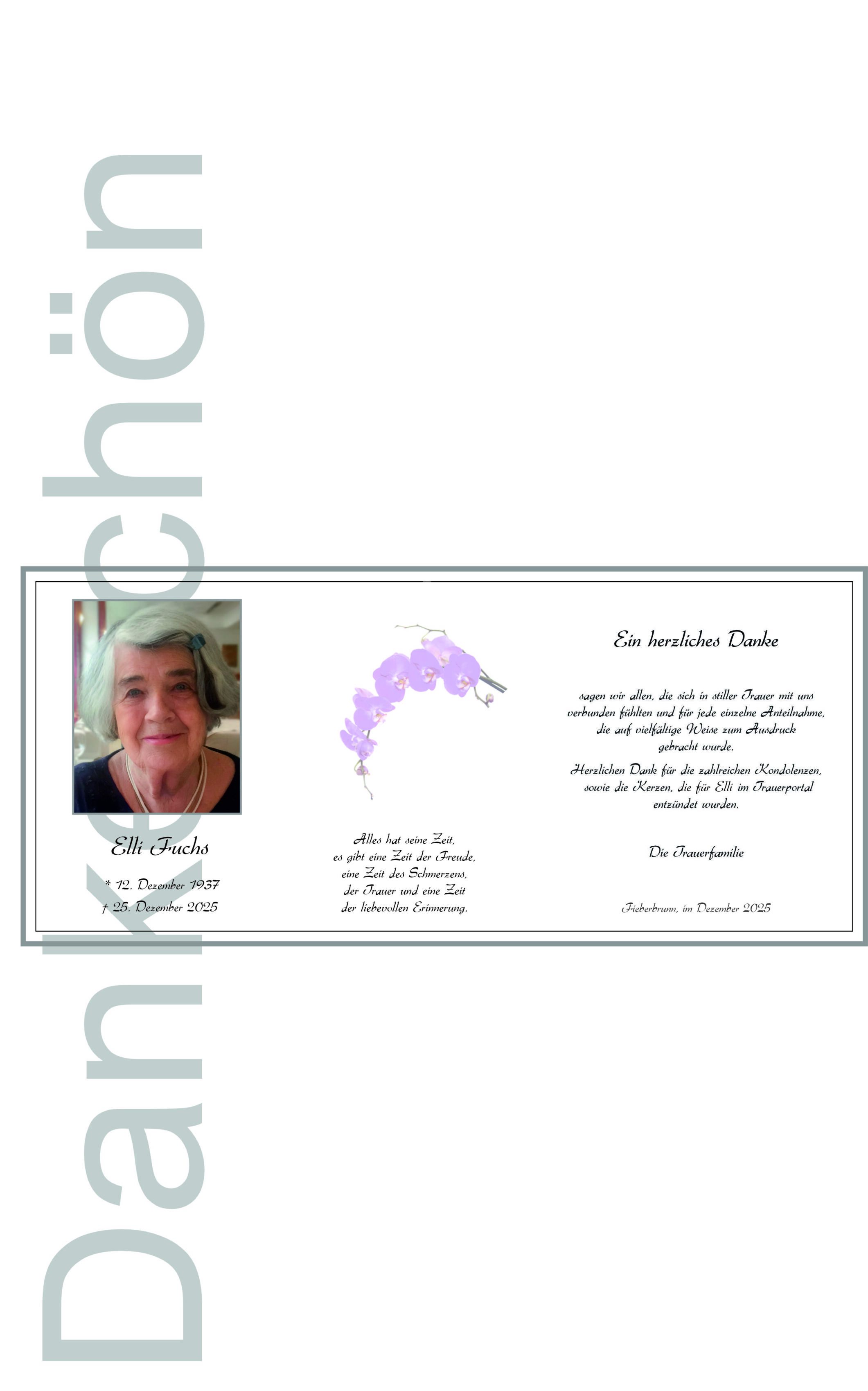 • Aufrichtige Anteilnahme entbieten die Fieberbrunner Pensionisten/Innen; wir werden unserer "Elli" als langjähriges, treues Mitglied stets ein ehrenden Andenken bewahren - sie möge ruhen in Frieden!