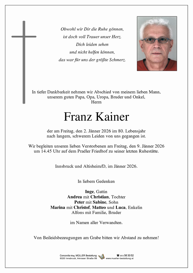 Friedhof Pradler Friedhof, † 02.01.2026 (79 Jahre)