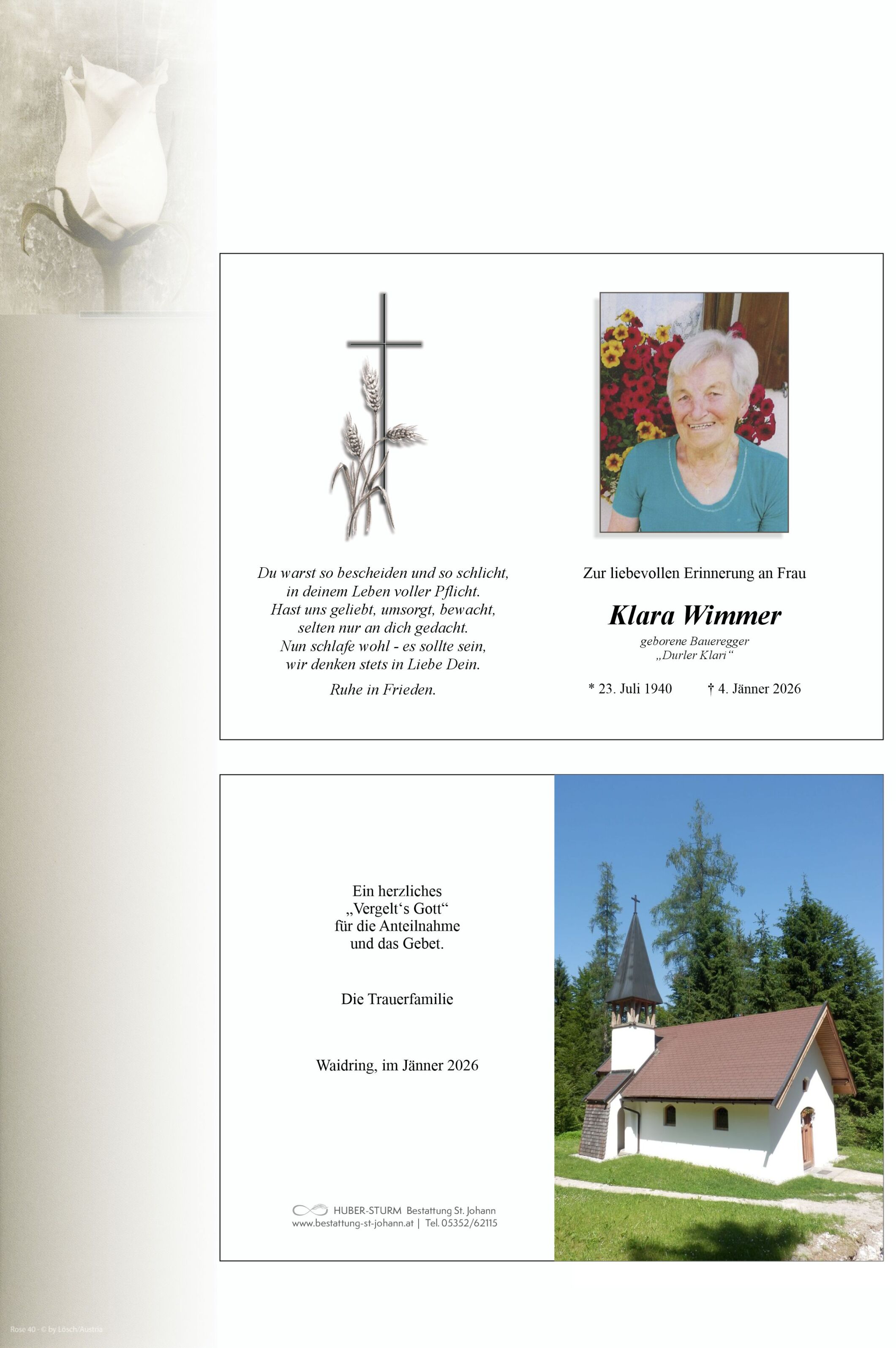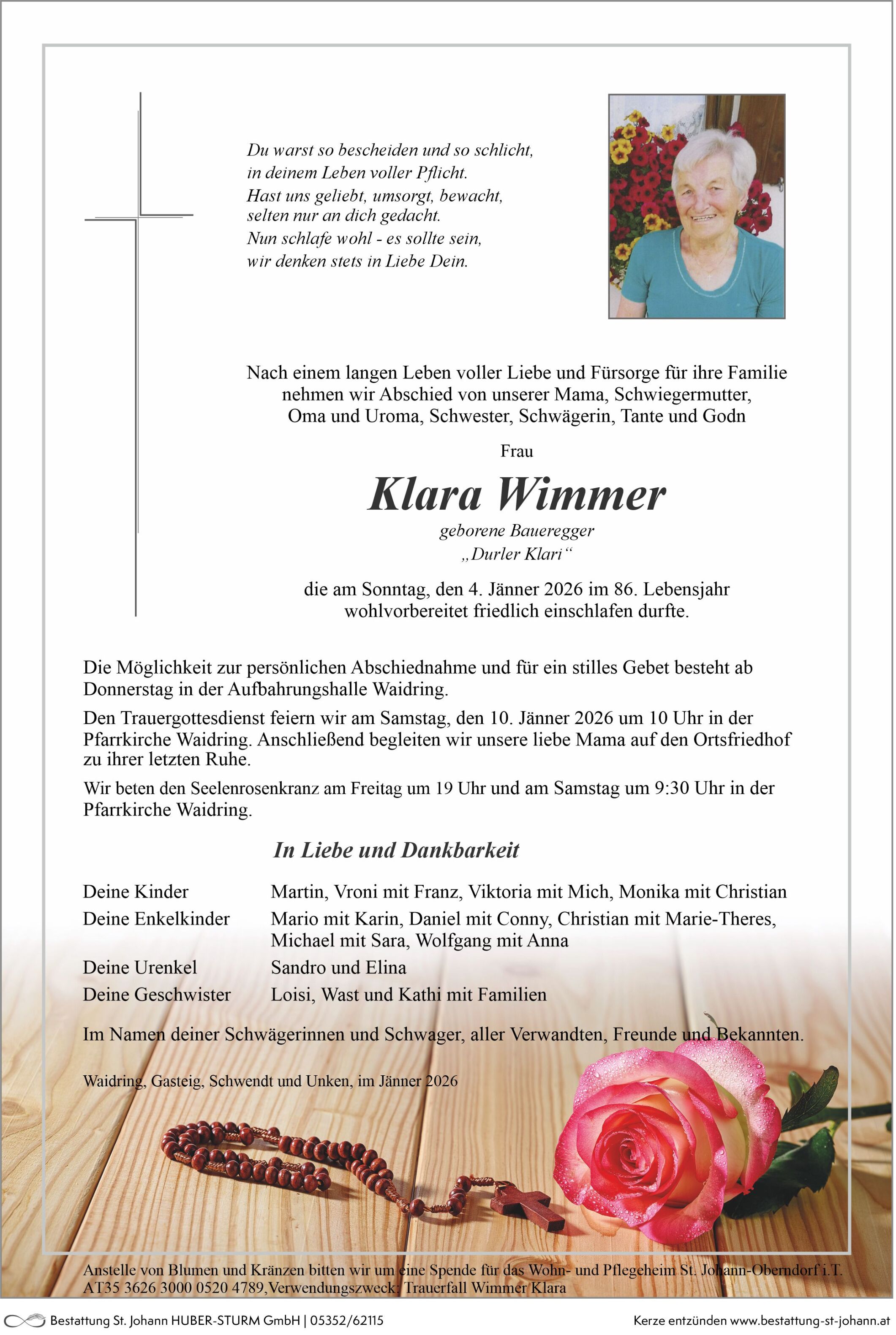 Friedhof Friedhof Waidring, † 04.01.2026 (85 Jahre)