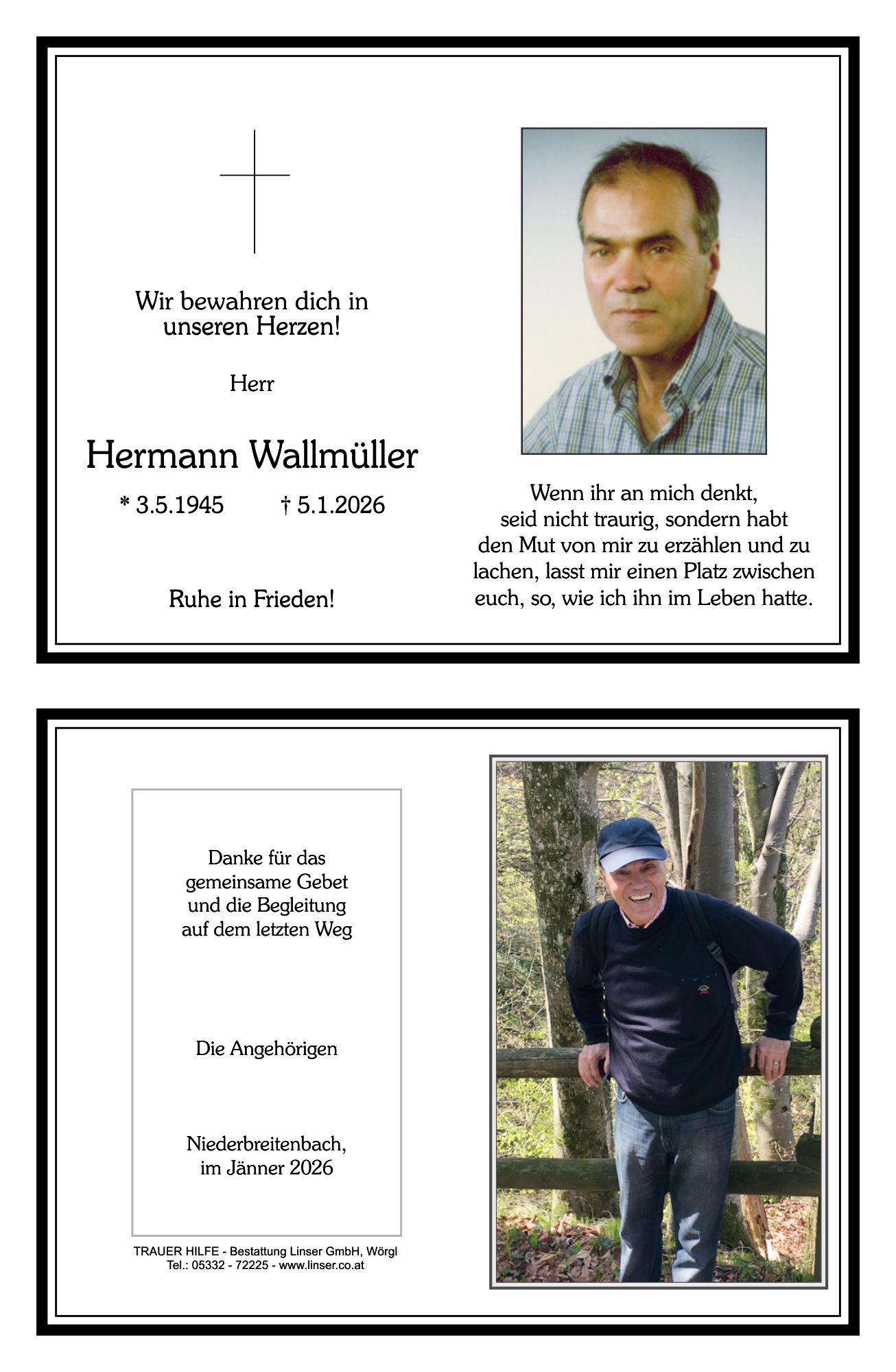 Bestattung wurde durchgeführt von: Walter Linser TrauerHilfe Bestattung Linser GmbH Wildschönauerstraße 41 6300 - Wörgl Tel.: 05332 72225 zum Bestatter
